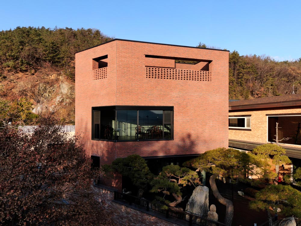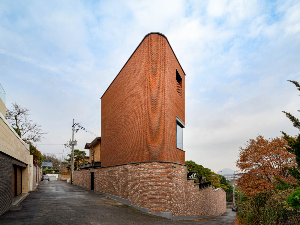 HAUS ON THE HILL Architect | Lee, Keunsik _ LEE KEUN SIK Architects Supervisor | Lee, Keunsik _ LEE KEUN SIK Architects Construction | THEO Construction Project team | Bae, Choonkun Location | Gwacheon-si, Gyeonggi-do, Korea Program | Private house Site area | 669.00㎡ Building area | 144.63㎡ Gross floor area | 478.84㎡ Building to land ratio | 21.62% Floor area ratio | 34.32% Building scope | B1F - 2F Structure | RC Exterior finishing | Red brick Interior finishing | Exposed concrete, Granite, Gypsum board Design period | Dec. 2018 ~ Feb. 2019 Construction period | May 2019 ~ Dec. 2019 Photograph | Gu, Uijin Structural engineer | SDM Mechanical engineer | HITEC ENGINEERING Electrical engineer | HITEC ENGINEERING Fire engineer | HITEC ENGINEERING |