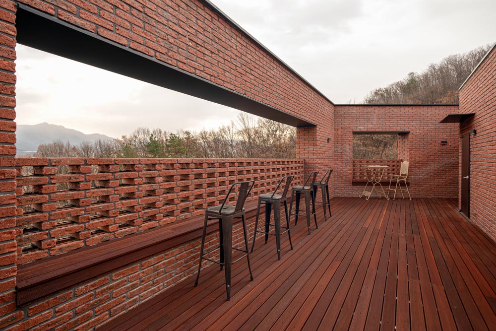 HAUS ON THE HILL Architect | Lee, Keunsik _ LEE KEUN SIK Architects Supervisor | Lee, Keunsik _ LEE KEUN SIK Architects Construction | THEO Construction Project team | Bae, Choonkun Location | Gwacheon-si, Gyeonggi-do, Korea Program | Private house Site area | 669.00㎡ Building area | 144.63㎡ Gross floor area | 478.84㎡ Building to land ratio | 21.62% Floor area ratio | 34.32% Building scope | B1F - 2F Structure | RC Exterior finishing | Red brick Interior finishing | Exposed concrete, Granite, Gypsum board Design period | Dec. 2018 ~ Feb. 2019 Construction period | May 2019 ~ Dec. 2019 Photograph | Gu, Uijin Structural engineer | SDM Mechanical engineer | HITEC ENGINEERING Electrical engineer | HITEC ENGINEERING Fire engineer | HITEC ENGINEERING |
