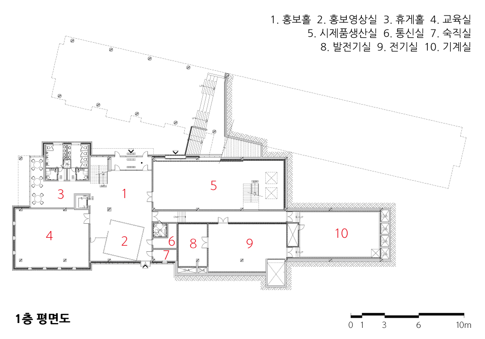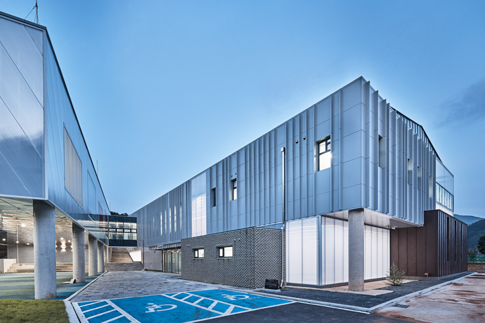Yeongwol Bioindustry Center Architect | Kim, Hyunsuk_Flat Architects Client | Yeongwol-gun Supervisor | Hana Architects & Engineers Co., Ltd. Construction | Wooil Co., Ltd. Project team | Son, Jongheok / Jeong, Sangjoo / Oh, Byoungyoon Location | Donggang Ecological Park, 258 Samok-ri, Yeongwol-eup, Yeongwol-gun, Gangwon-do, Korea Program | Laboratory / Insect breeding facility Site area | 170,042㎡ Building area | 1,594.81㎡ Gross floor area | 2,543.00㎡ Building to land ratio | 3.88% Floor area ratio | 4.84% Building scope | 2F Structure | RC, SC Exterior finishing | Metal panel, Danpal system panel, brick Interior finishing | Stone, Tile, SGP, Sound absorption tex Design period | Feb. 2016 - Oct. 2016 Construction period | Mar. 2017 - Mar. 2019 Photograph | Lee, Namsun Structural engineer | Synergy Engineering Mechanical engineer | Taelim ENC Electrical engineer | SB ENC Fire engineer | Daean Engineering |