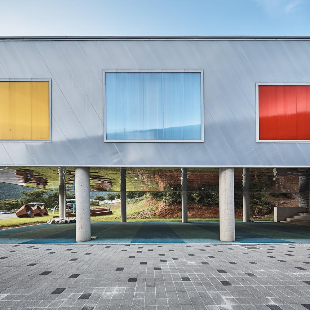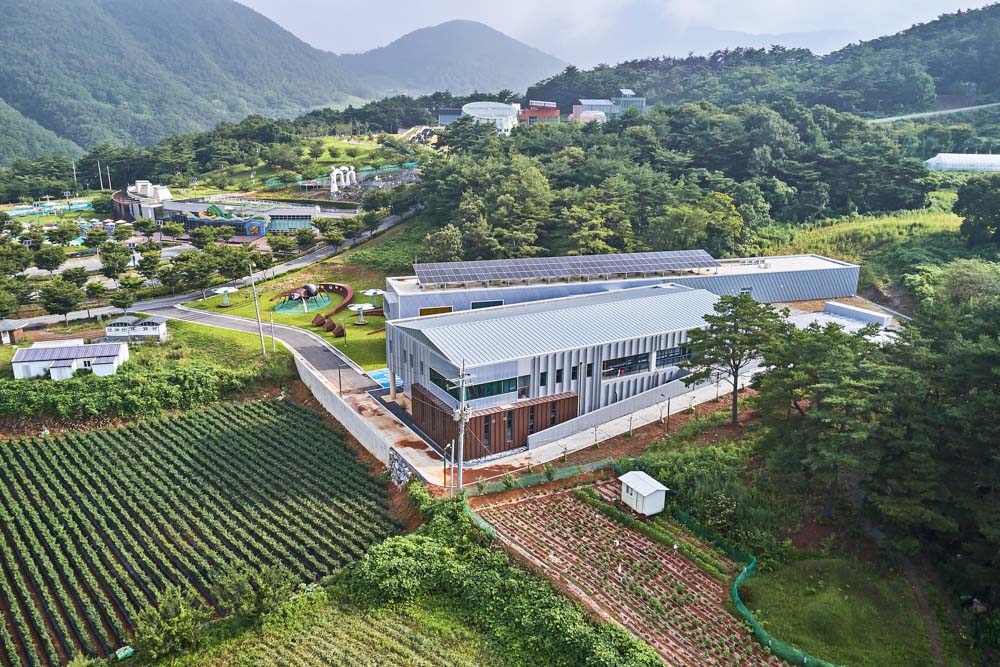 Yeongwol Bio Industry Center is a security facility located in a public park. The boundary with the public was divided using the topography of the site. The 5-meter sloped site naturally provides a front yard and a middle yard for the public, and a private research space is protected along with the back yard.