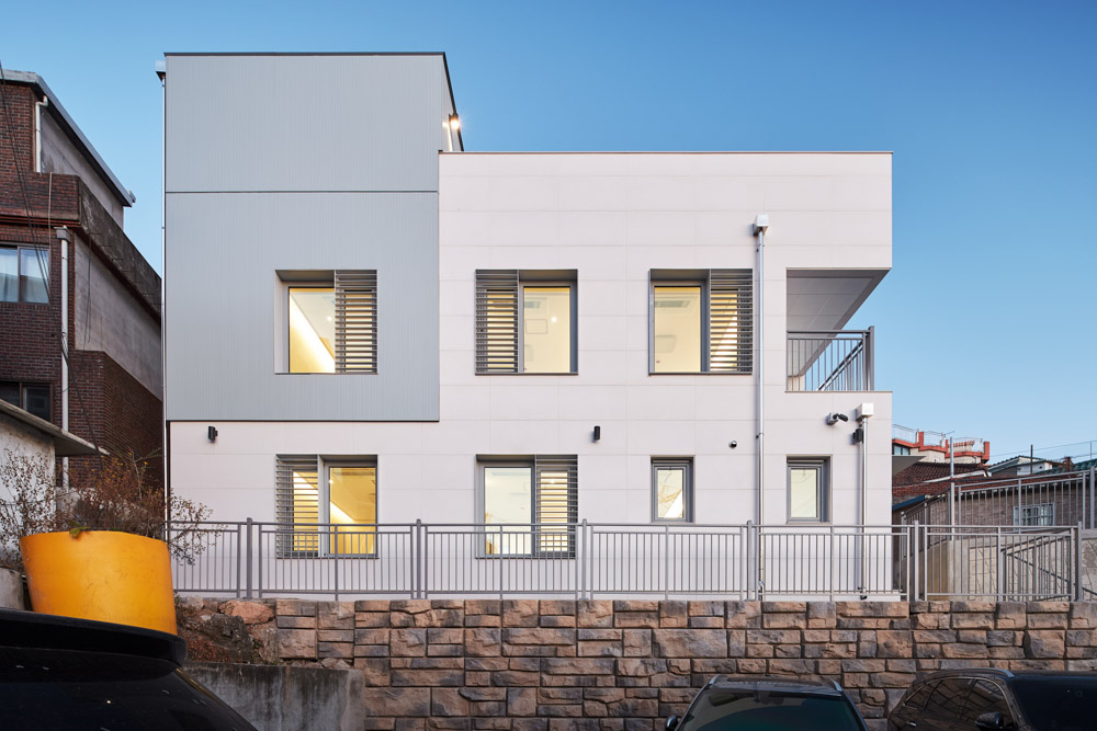 Samyang-dong Youth Shared Housing Architect | Kim, Hyunsuk _ EN ARCHITECTS Inc. Client | Seoul Metropolitan Government Supervisor | Kim, Hyunsuk _ EN ARCHITECTS Inc. Construction | RAUMFIKA Project team | Bak, Jieun / Kang, Soojeong Location | 3-8, 3-10, Solmairo, Gangbuk-gu, Seoul, Korea Program | Public rental housing, Neighbourhood facility Site area | 278.04㎡ Building area | 166.64㎡ Gross floor area | 373.22㎡ Building to land ratio | 59.93% Floor area ratio | 134.23% Building scope | 2 Buildings, 3F Structure | RC Exterior finishing | Mega panel(White-Gray), Porcelain Tile(Unifur Super-White) Interior finishing | Wood flooring, Wallpaper above gypsum board, Wood sound absorption board Design period | Jan. 2019 - Jul. 2019 Construction period | Oct. 2019 - Oct. 2020 Photograph | Lee, Hanul Structural engineer | Jungang Structural Engineering Co., Ltd. Mechanical engineer | Sewon Inc. Electrical engineer | Jeongyeon Inc. Fire engineer | Sewon Inc. |