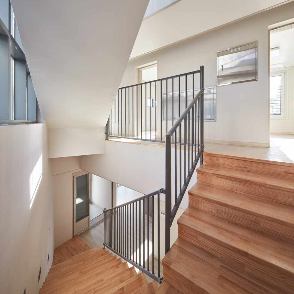 Moreover, I wanted to maintain the alley communication culture. The designated place is impossible to reach using cars and is only accessible using stairs or foot. I wanted to create a space for an accidental meeting to share their daily lives. Rooms inside are independent, but the shared kitchen, meeting place, venture and hobby space, and community stairs will be a place for residents' communication.