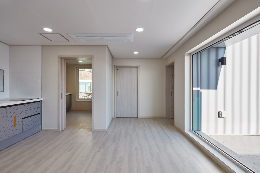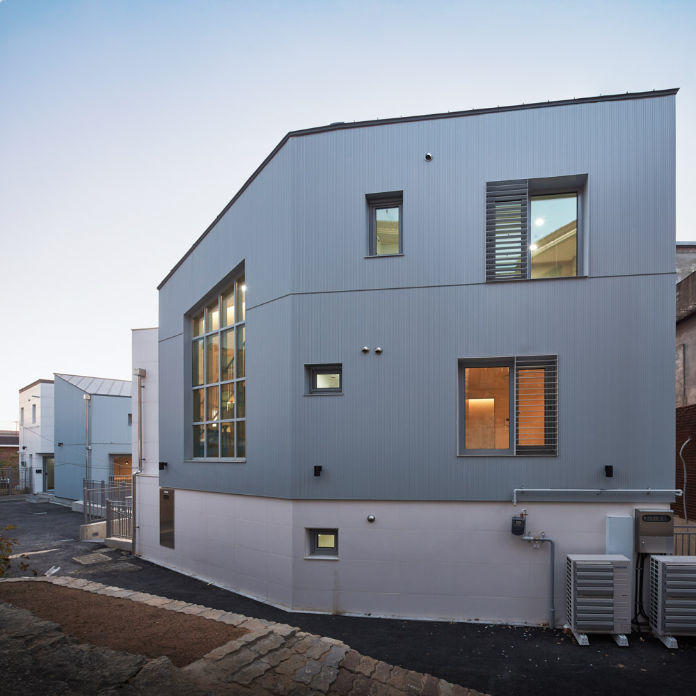 Samyang-dong Youth Shared Housing Architect | Kim, Hyunsuk _ EN ARCHITECTS Inc. Client | Seoul Metropolitan Government Supervisor | Kim, Hyunsuk _ EN ARCHITECTS Inc. Construction | RAUMFIKA Project team | Bak, Jieun / Kang, Soojeong Location | 3-8, 3-10, Solmairo, Gangbuk-gu, Seoul, Korea Program | Public rental housing, Neighbourhood facility Site area | 278.04㎡ Building area | 166.64㎡ Gross floor area | 373.22㎡ Building to land ratio | 59.93% Floor area ratio | 134.23% Building scope | 2 Buildings, 3F Structure | RC Exterior finishing | Mega panel(White-Gray), Porcelain Tile(Unifur Super-White) Interior finishing | Wood flooring, Wallpaper above gypsum board, Wood sound absorption board Design period | Jan. 2019 - Jul. 2019 Construction period | Oct. 2019 - Oct. 2020 Photograph | Lee, Hanul Structural engineer | Jungang Structural Engineering Co., Ltd. Mechanical engineer | Sewon Inc. Electrical engineer | Jeongyeon Inc. Fire engineer | Sewon Inc. |