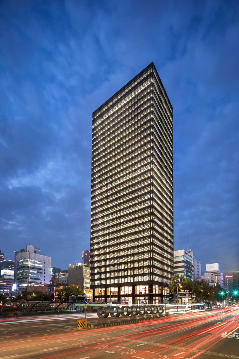SAMIL BUILDING RENOVATION Client | SK D&D / Bentall Green Oak / IGIS Asset Management CM | JUNGLIM ARCHITECTURE Project team | ONE O ONE _ Choi, Joonwoo / Park, Sulgi / Chung, Jaewon JUNGLIM _ Kim, Haejin / Kim, Hyunsam / Cho, Sungwon / Son, Dongki / Kim, Jaehyun / Kim, Jungyeon / Park, Jaewan / Jeon, Sangwoo / Chung, Mokjo CM team | Ahn, Inseok / Kim, Seongsik / Kim, Seonsik Construction | KCC E&C Location | 85, Cheonggyecheon-ro, Jongno-gu, Seoul, Korea Program | Business, Neighbourhood facility Site area | 1,877.40㎡ Building area | 1,090.58㎡ Gross floor area | 35,010.61㎡ Building to land ratio | 58.09% Floor area ratio | 1,704.87% Building scope | B2F - 31F Structure | Steel, RC Exterior finishing | Thk28 Color Low-e Pair Glass, Steel Curtain wall System, AL composite panels Interior finishing | Terrazzo tile , OA Floor+Carpet tile, Exposed ceiling paint Design period | Mar. 2018 - Mar. 2019 Construction period | May 2019 - Sep. 2020 Photograph | Yoon, Joonhwan / Jang, Mi Structural engineer | Neocross Structure Mechanical engineer | Jungdo ENG Electrical engineer | Nara ENG Fire engineer | Namdo TEC |