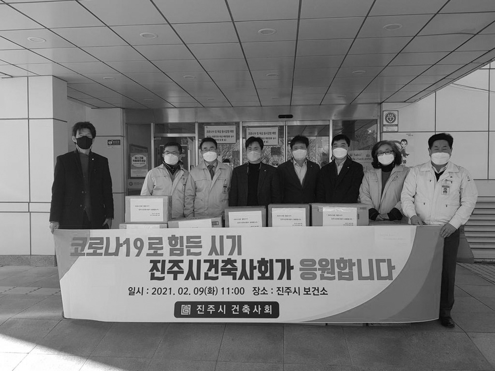 경상남도건축사회 진주지역건축사회는 지난 2월 9일 진주시 보건소를 방문해 코로나19 감염병 예방에 총 력을 다하고 있는 직원들을 응원하며 과일, 다과류, 음료수 등 200만원 상당의 위문품을 전달했다.