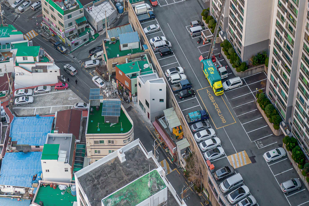 Jeonpo-dong, Busan's representative Sanmandi (the Busan dialect referring to mountaintop), is full of houses on a randomly divided small parcel while facing Sanbok Road. In the meantime, there is a building, 'Eomjichuck House,' that looks like 'thumps-up 'with a strong impression.