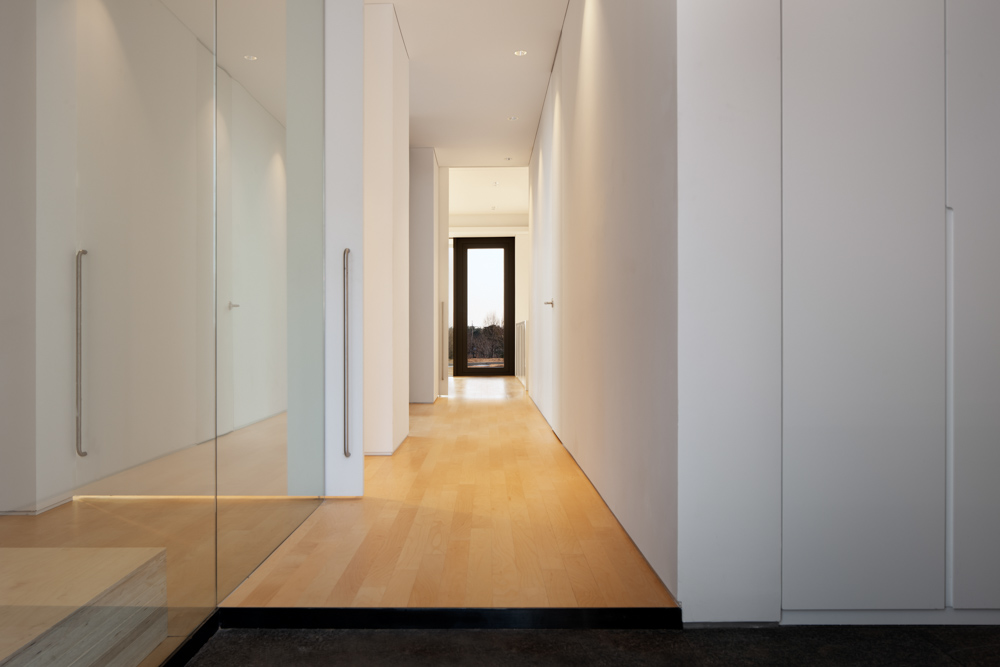 황준 건축사는 디테일이 건축의 시작이자 끝이라고 생각한다. 용인 주택의 디테일은 황준 건축의 한 정점이라 할 만하다. 그동안 경험했던 수많은 시행착오의 수정이자 성취의 결과이다. 재료와 재료가, 면과 면이 만나는 부분을 별도의 장치 없이 직접 만나는 디테일은 최소한 우리나라에서는 흔히 보기 힘든 사례이다. 그는 이것을 “1:1로 만난다”라고 표현한다. 벽과 바닥은 그냥 바로 만난다. 소위 걸레받이가 없다(단지 벽을 10밀리미터 띄우는 마감을 할 뿐이다.). 천장과 벽도 같은 개념이다. 슬라이딩 도어와 유리벽의 모든 프레임이 천장 속과 바닥 속에 숨겨져 있다. 이 모든 것은 디테일에 대한 탐구와 시공자와의 분투 속에 이루어진 성취이다. 사실 건축에 있어 단순하게 보이는 디테일일수록 수많은 노력과 눈에 보이지 않는 복잡함 속에 이루어지기 때문이다.