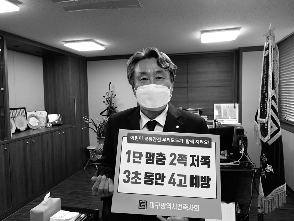 대구광역시건축사회는 3월 29일 ‘어린이 교통안전 릴레이 챌린지’에 동참했다. 어린이 교통안전 릴레이 챌린지는 행정안전부가 지난 12월 시작한 참여형 릴레이 캠페인으로, 어린이 보호구역 내 교통사고 예방과 어린이 보호 최우선 문화 정착에 대한 사회적 공감대를 형성하기 위한 캠페인이다. 캠페인은 SNS를 통해 국민 아이디어 공모에서 선정된 어린이 교통안전 표어(1단 멈춤! 2쪽 저쪽! 3초 동안! 4고 예방!)를 공유하고 다음 참여자를 지명하는 방식으로 진행된다. 챌린지 다음 주자로는 강주원 (사)대한건축학회 대구경북지회장과 이한호 (사)한국건축가협회 대구경북건축가회장을 지목했다. 공정섭 제19대 대구시건축사회장은 “미래의 주역이 될 어린이들이 안전한 환경 속에서 건강하고 행복하게 꿈을 키워나갈 수 있게 어린이들의 안전을 최우선으로 여기는 성숙한 교통문화가 정착되길 바란다”는 뜻을 밝혔다.