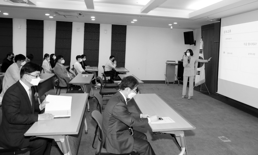 이번 제2회 친절교육은 ‘회원과 소통하는 대화법’을 주제로 말 잘하는 직원의 소통의 비밀, 상대방의 관심사에 집중한 대화 방식, 논리적 커뮤니케이션 등에 관한 강의가 진행됐다. 지난 교육은 기본적인 마음가짐과 전화예절을 중심으로 진행됐다면, 이번 교육은 소통을 중심으로 관계의 온도를 높일 수 있는 방법에 관한 내용이 주를 이뤘다. 홍선영 위주교육컨설팅 대표강사는 무인화·자동화가 늘어가는 와중 올해의 화두로 떠오른 ‘휴먼스킬’에 관해 설명하고, 공감과 집중, 상보교류의 중요성 등에 관해 설명했다. 강의를 들은 사무처 직원들은 “실질적 대화에 필요한 구체적인 단어 등의 예시를 접할 수 있었다”, “다양한 자료를 활용해 집중도가 높았다”는 강의 소감을 남겼으며, 향후 친절 응대에 더욱 힘쓸 것을 다짐했다.