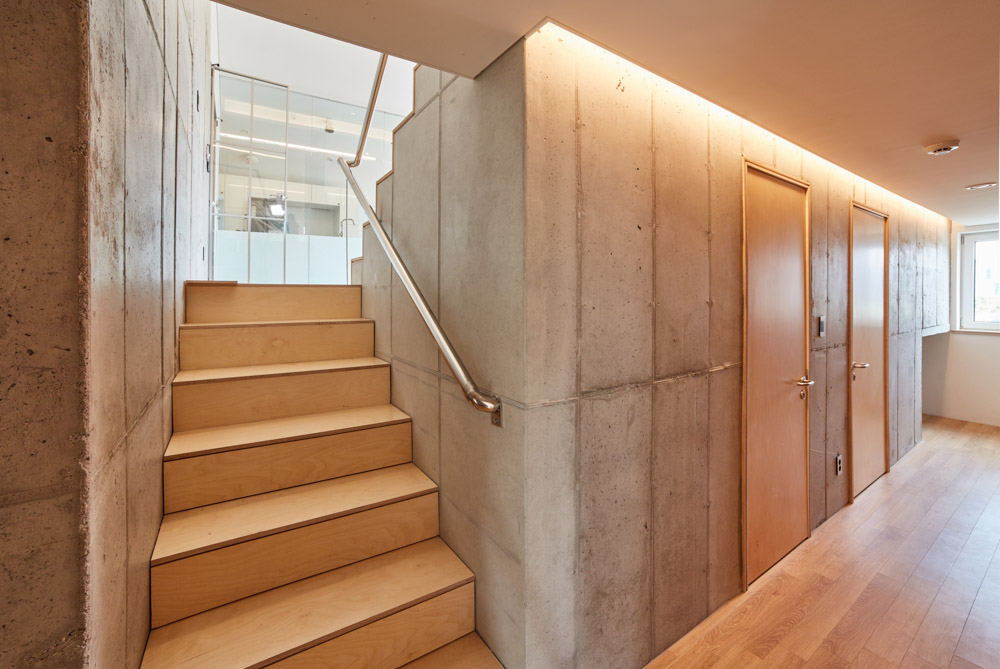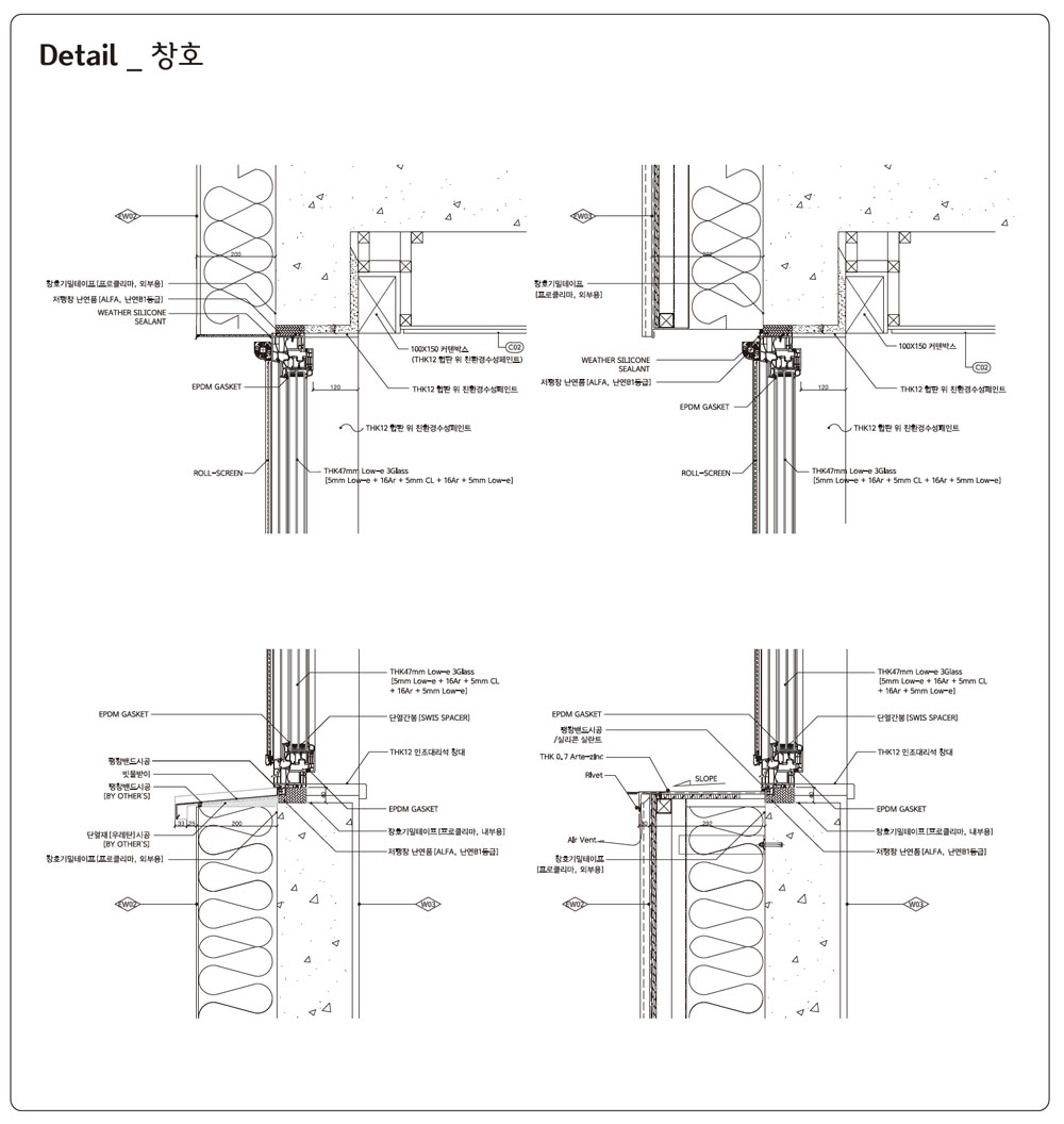 Pemberley House has been certified as a 3.0L passive house through airtightness and performance tests. Venetian blinds were installed between the quadruple windows in the rooms facing the south and the east, and electric shutters were installed in the skylight of the dining room to allow solar control. A structural thermal break product was applied to the balcony, and airtightness was secured by using an expanding and sealing tape around the windows and the doors. A 6KW photovoltaic lighting system on the roof serves as a fundamental element for a passive house, together with a heat exchanging ventilation apparatus.