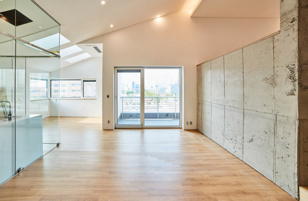 유리칸막이 너머 시선이 통화는 침실, 거실과 식당이 내려다보이는 서재와 침실, 사우나실과 욕실로 접근하는 독립된 계단, 거친 표면의 노출콘크리트 등은 살고 싶은 집을 항상 머릿속으로 그려온 거주자의 희망사항에 건축적 요소를 담아 구현되었다. 거주자 본인이 살고자 하는 집을 디자인하고 구성하는 과정에서 거주자 자신의 마음의 소리에 귀를 기울인 결과이다.