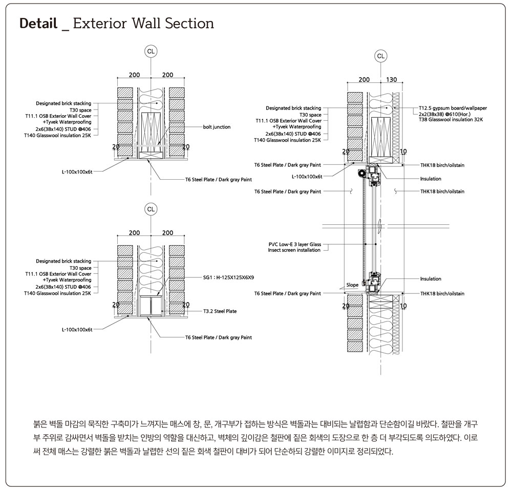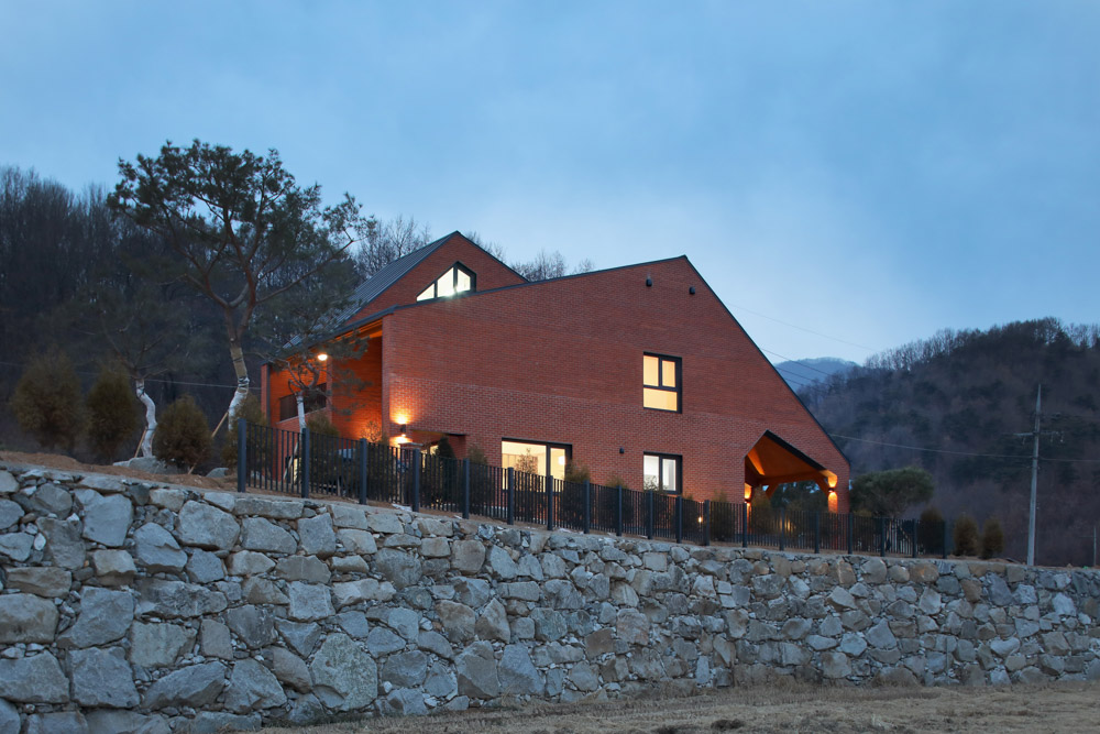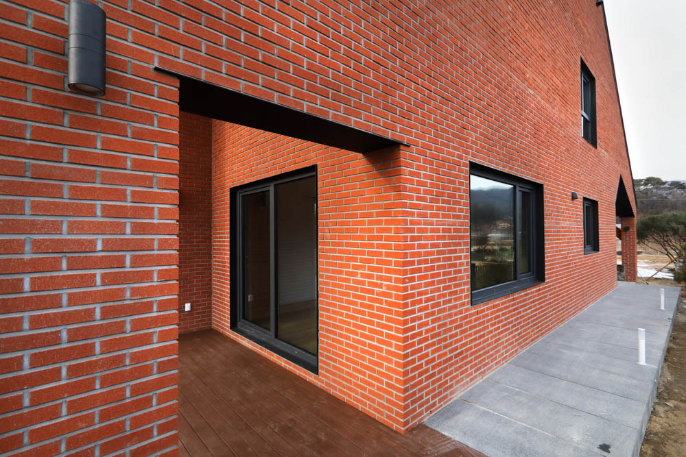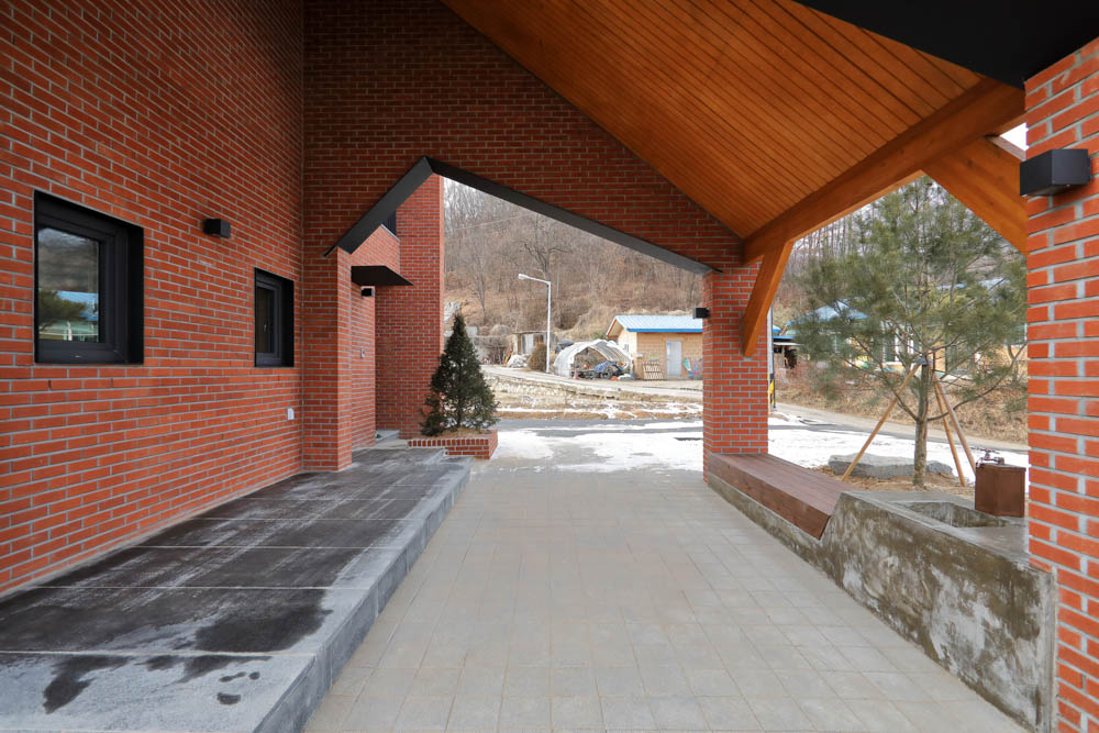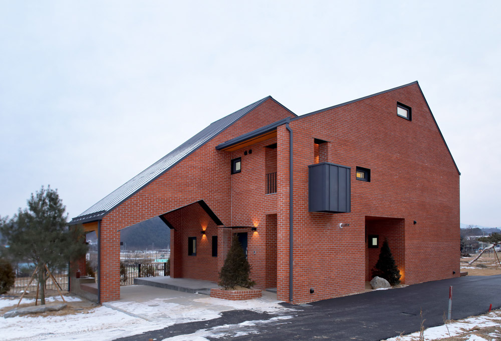 The exterior is made of red clay bricks that go well with nature. It was sufficient to contain warmth and is firmly located on the ground to form an existential beauty. Clients, architects, and construction companies all laugh together. ^^hahajip is a work of communication.