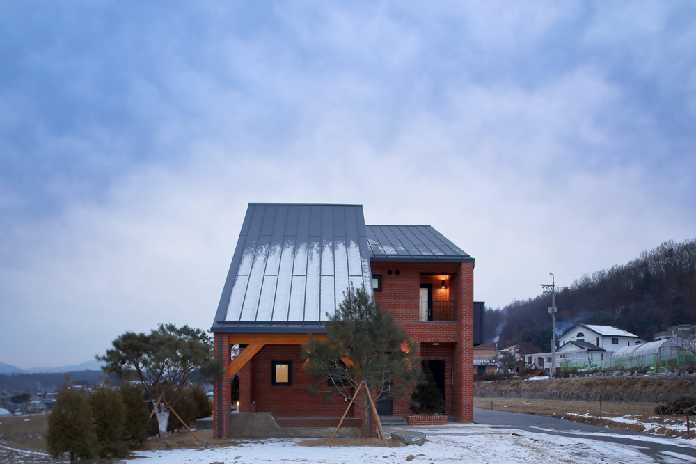 ^^hahaJip Architect | Seo, Kyounghwa _ Flying Architecture Client | Kim, Heonnam Supervisor | Seo, Kyounghwa _ Flying Architecture Construction | KS Housing Location | 34, Cheonggye-gil 57beon-gil, Yangseo-myeon, Yangpyeong-gun, Gyeonggi-do, Korea Program | House Site area | 394.00㎡ Building area | 92.13㎡ Gross floor area | 150.16㎡ Building to land ratio | 23.38% Floor area ratio | 38.11% Building scope | 2F Structure | Light-frame wood structure Exterior finishing | Red brick Interior finishing | Wallpaper, Wood flooring, Tile Design period | Apr. 2017 – Sep. 2017 Construction period | Sep. 2017 – Jan. 2018 Photograph | Song, Jung Structural engineer | Doohang Structures & Consultants Co. Ltd Mechanical engineer | Codam Technical Group Electrical engineer | CNS Engineering |
