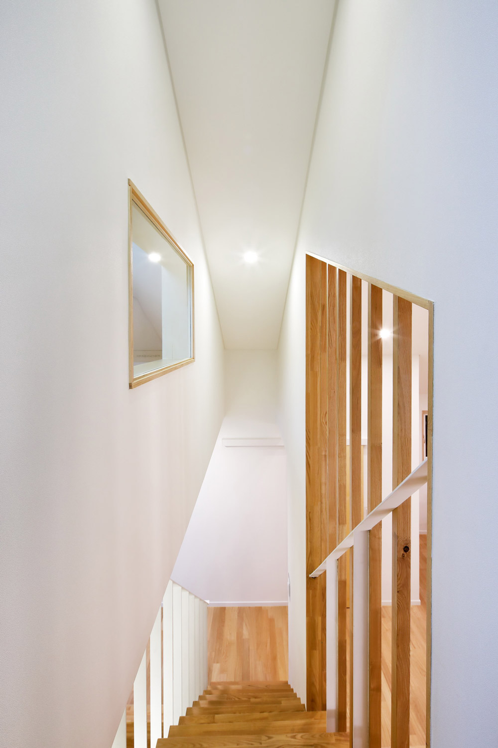 엇갈린 형태는 단순히 공간만 구분하는 것이 아니다. 그 겹쳐진 면에는 층을 연결하는 계단과 서로의 공간을 넘나드는 중첩된 ‘창’이 있다.
