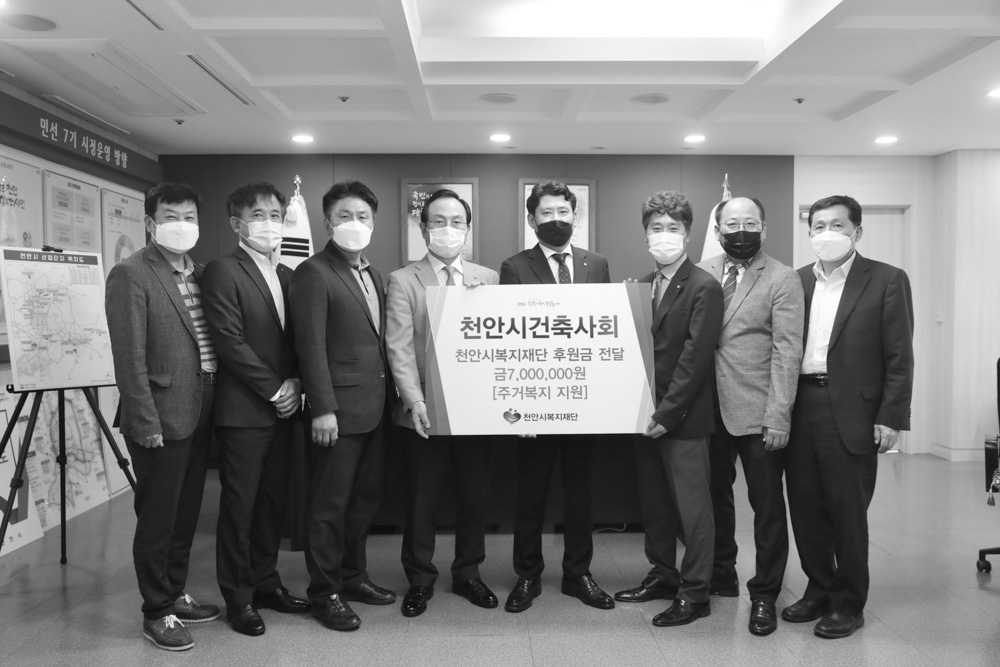 충청남도건축사회 천안지역건축사회는 5월 4일 천안시청에서 지역 내 주거복지 향상을 위해 700만 원의 후원금 전달식을 가졌다.