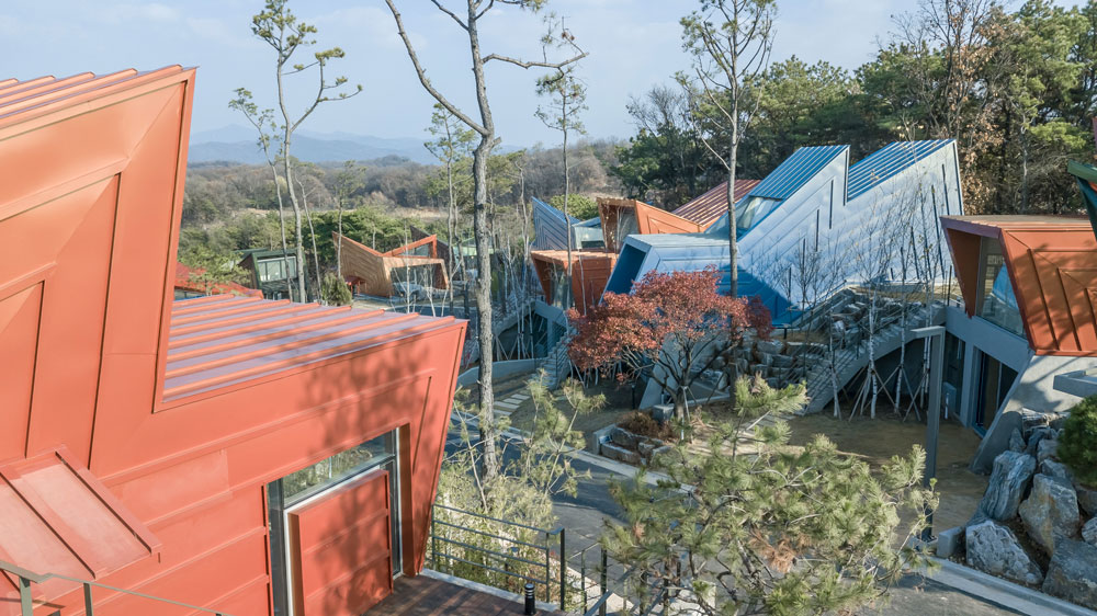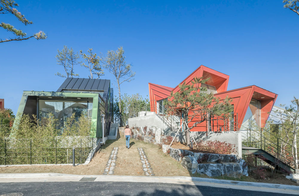 화헌, 그리고 최근 경독재- 이들 건축물의 이름은 지금의 현실과 동떨어져 있고, 이들이 전통에서 온 것이라고 여기더라도 그 모습은 예상과 달랐다. 주변의 현장 건축과는 다르게 다들 초연한 자태였다. 이들을 보았을 때의 충격은 아직도 가시지 않았다. 무엇보다도 환원의 대상이 없기 때문에 더욱 그랬을 것이다. 그런데 ‘스텔라피오레’는 새롭게 기대하지 못한 방식의 충격을 한층 더했다. 19채의 단지를 위한 별과 꽃의 주제어, 주제의 직유라고 해야 옳을 것 같은 외관, 그리고 다양한 색채. 세 가지 유형으로 이루어진 주거와 건축물보다 훨씬 높이 솟아 있는 소나무들, 자전거를 타고 있는 꼬마들, 그 뒤에서 함께 담소를 나누는 사람들. 또, 주말이면 찾아와 이곳저곳을 보살피는 시공사 주인 내외. 반면 선입관, 아니 편견을 갖도록 하는 공식 사진들. 그러나 시간의 흐름과 함께 깊이 자연 속으로 파고든 색조, 그리고 공간들. 이 모두가 머물 곳은 어디일지….
