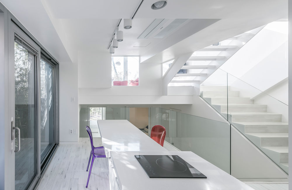 그렇다. 그의 화헌이 그랬고, 스텔라피오레도 그렇다. 스킵플로어 구성, 실내의 중심에 위치한 계단의 2박 구성, 입면의 3박 형식들. 근대 건축사들이 기하학의 질서라는 명분으로 고집해왔던 사면 구성이 아닌, 오히려 이를 넘어 중세 석공 장인들이 비밀스럽게 사용했던 삼각도법 식의 입면 구성. 천공된 바닥의 계단들, 육신의 중압을 무색하게 하는 새로운 시야의 유혹. 가까이 또 멀리, 그리고 높은 곳을 알리는 시상들, 움직임을 멈춰도 가두는 것이 아니라 감싸는 영역들. 이리저리 둘러보아야 알 것만 같은 불편의 구조가 아니라, 우리의 내적·심적 구조를 대변하는 요소들, 곧 벽면과 빛. 이들이 우리를 마주한다.