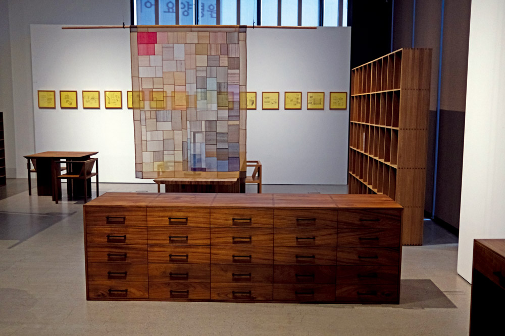전시에 등장하는 모든 가구와 조각보는 수사와 장식을 멀리한다. 특히 가구는 겉으로 보기에 단순하고 평온해 보이지만, 결구를 이루는 부재들 사이의 투쟁이 있으며 이는 가구들이 때로는 긴장을 부르는 이유이기도 하다. 때문에 승효상 건축사는 ‘스스로 추방된 이들이 거주하는 수도원의 가구’라는 부제를 달았다. 조각보는 염색부터 직조까지 문자 그대로의 수고로 이루어진 것으로, 한 땀 한 땀이라는 글귀가 갖는 진지함과 색조의 얇은 천 속에는 보이지 않는 치열함과 집요함이 담겨있다.