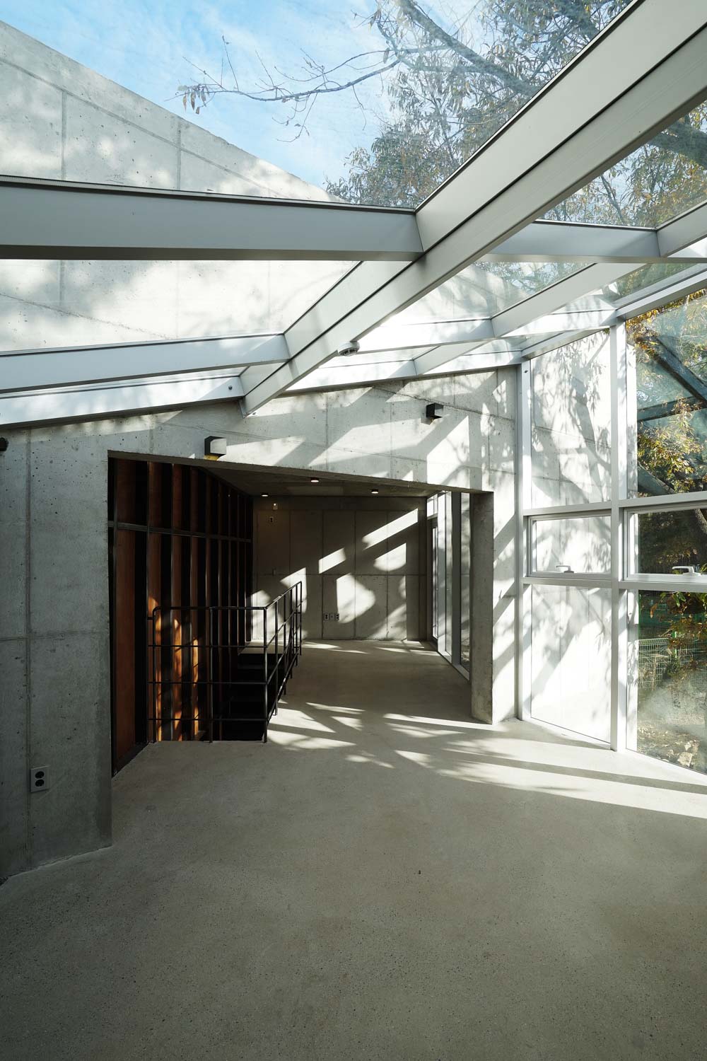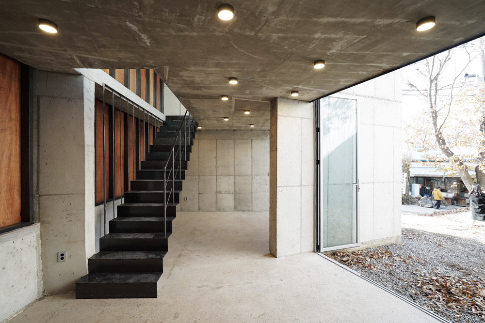 We also tried to use the most primitive materials in the construction method. This was to create a space in which only the variables before actual use by people were reflected. We thought it necessary to look like just before people enter or before real life is included. Therefore, the rawest materials such as concrete, iron, plywood, and glass were mainly used. The most one-dimensional processing method was attempted, using achromatic tones as much as possible.