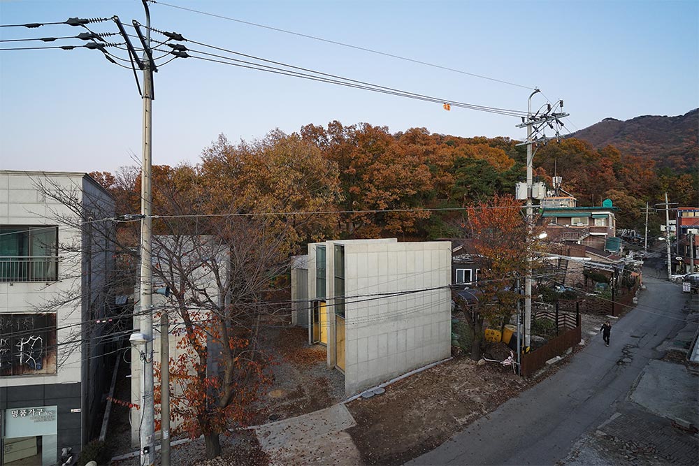Hanam-si Oak House Architect | Jo, Janghee · Won, Youmin(NAI) _ JYA-RCHITECTS Client | Individual Supervisor | Jo, Janghee _ JYA-RCHITECTS Construction | Owner direct control Project team | Seong, Jieun Location | 41, Hagam-ro, Hanam-si, Gyeonggi-do, Korea Program | a Private house / Neighborhood facility Site area | 407.00㎡ Building area | 119.82㎡ Gross floor area | 197.46㎡ Building to land ratio | 29.44% Floor area ratio | 48.52% Building scope | 2F Structure | RC Exterior finishing | Exposed Concrete, Galvarium type-C steel sheet Interior finishing | Varnish finish above plywood, Exposed Concrete Design period | Aug. 2018 – Mar. 2019 Construction period | Apr. 2019 – Oct. 2019 Photograph | Hangil Structural engineer | Jungyeon Mechanical engineer | Jungyeon Electrical engineer | Jungyeon Fire engineer | Jungyeon |