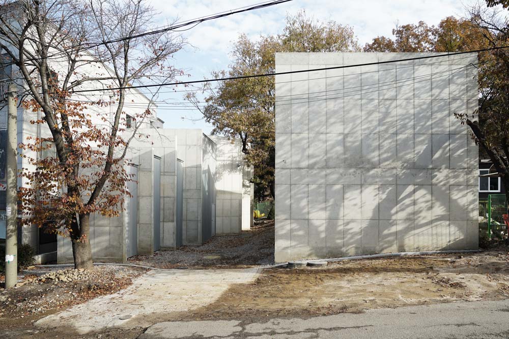 건축을 만드는 방식에 있어서도 가장 원초적인 재료들을 사용하고자 하였다. 이는 사람이 실제 사용하기 전의 변수만 반영된 공간을 만들고자 함이었다. 사람이 들어가기 전, 실제 생활이 담기기 전, 딱 그전까지의 모습이 필요하다고 생각했다. 따라서 재료는 콘크리트와 철, 합판, 유리 등 가장 날것에 가까운 건축재료들을 위주로, 가급적 무채색의 톤으로, 가장 일차원적 가공방식으로 시공하고자 하였다.