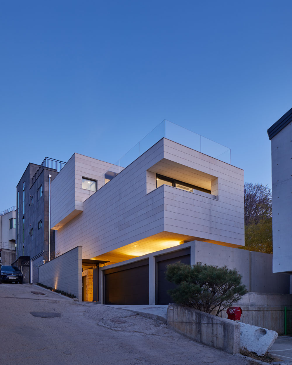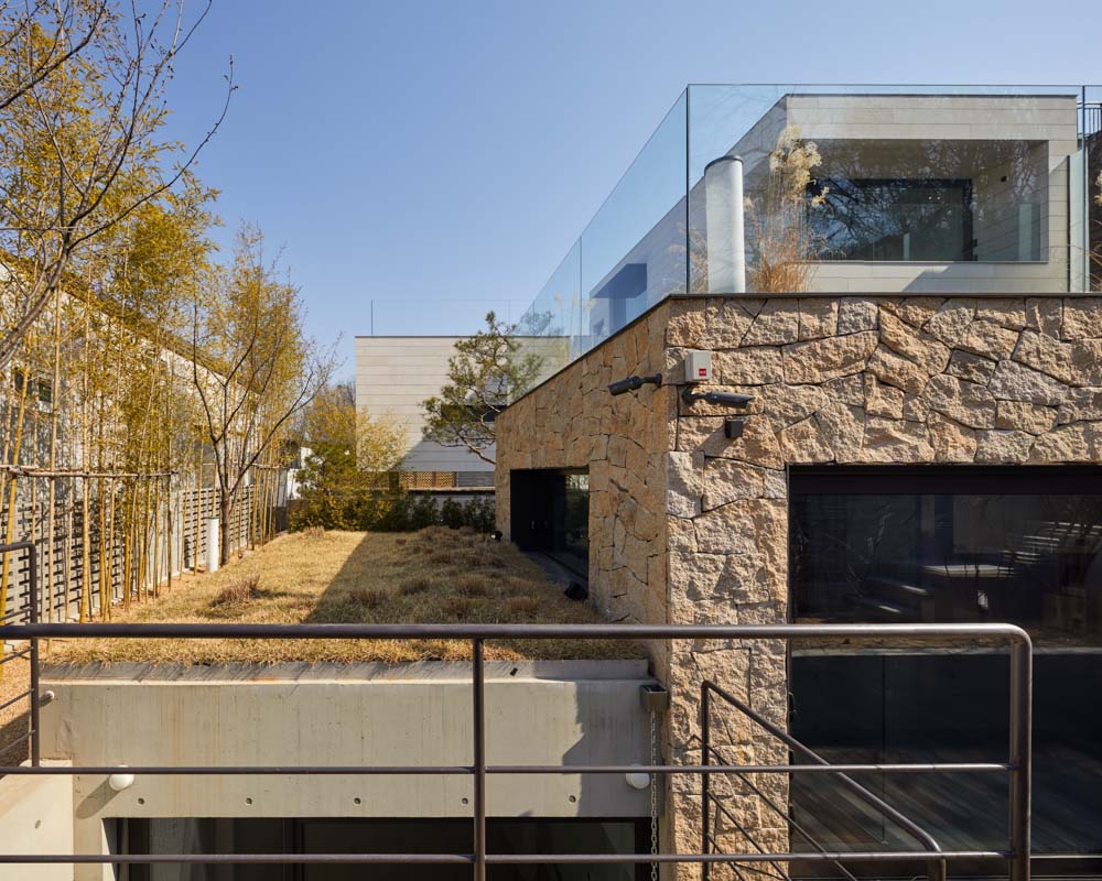‘Seopae-dong’ is situated at the foot of Mt. Simhak and located on the site facing the northwest Han River. The first floor is designed to be ‘ㄷ’ shaped, and bamboo is planted across it to embrace the courtyard entirely. On the second floor, ‘|’ shaped mass for the access road, and on the third floor, ‘―’ shaped mass for the eastern house is stacked to hide gazes from the outside. And the external spaces created from alternative laying are considered to be utilized in a variety of ways.