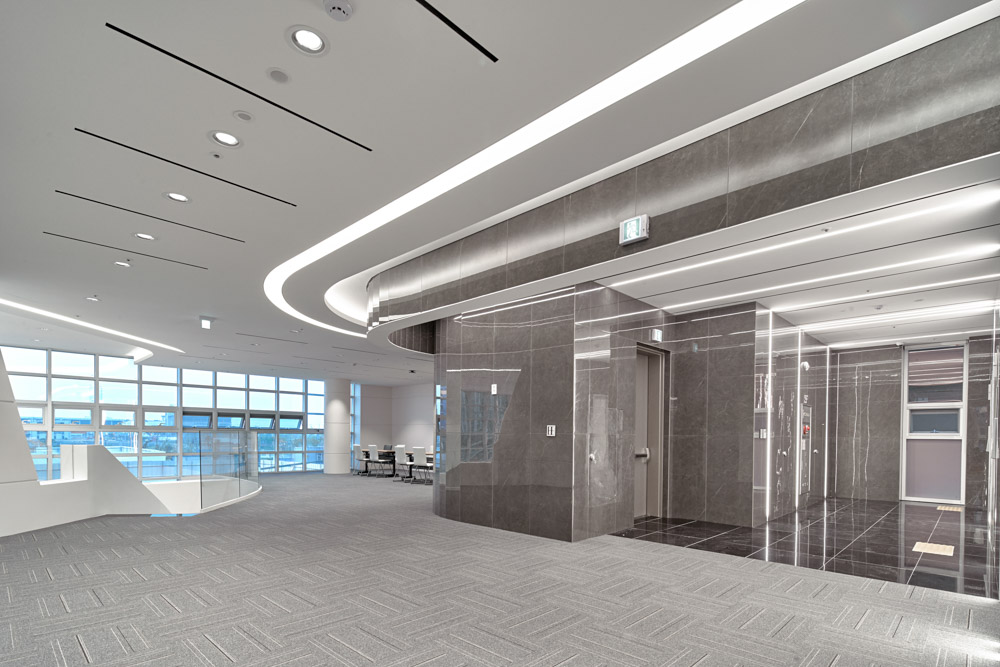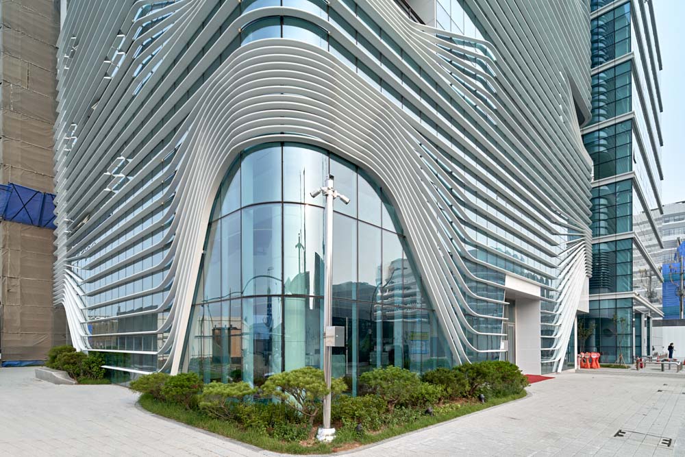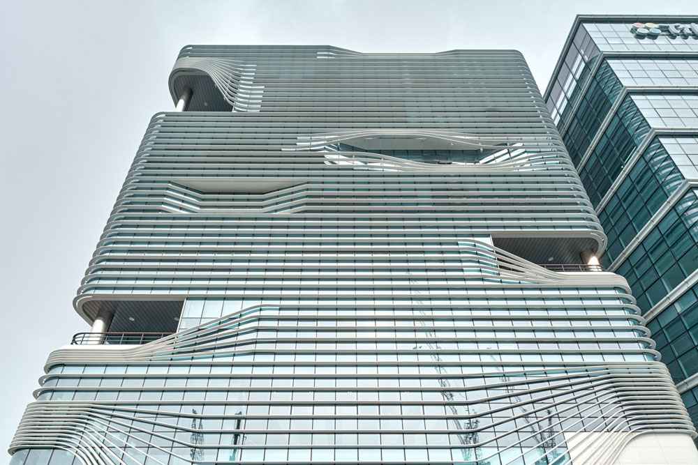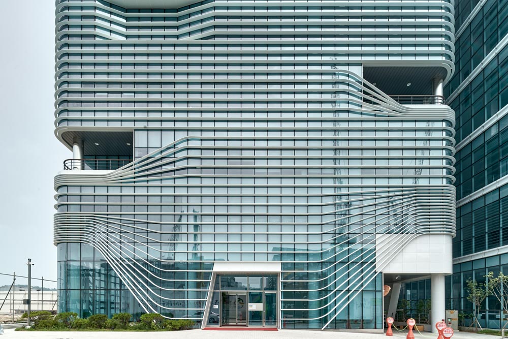 Additionally, horizontal louvers combine into a flow of continuous layered lines across the facade to create the desired signature form.