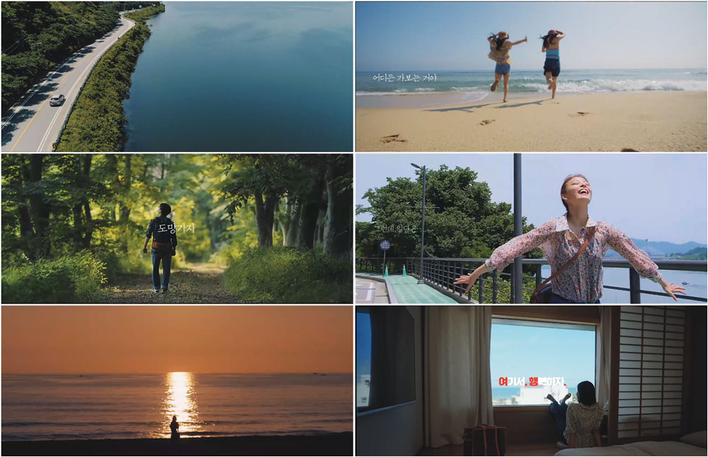 도망가자는 유혹에 화면은 시원한 바다와 상쾌한 숲으로 바뀐다. 도시에서 지친 사람들은 바다에 뛰어들고, 숲 속을 걷고, 노을을 보고, 낯선 잠자리의 커튼을 열어젖히며 잠시 팍팍한 일상을 잊는다. 그들이 도망쳐서 가고 싶은 곳은 ‘아무도 날 찾지 않는 곳’이고, ‘부딪힐 일 없는 곳’, ‘편히 숨 쉴 수 있는 곳’이다.