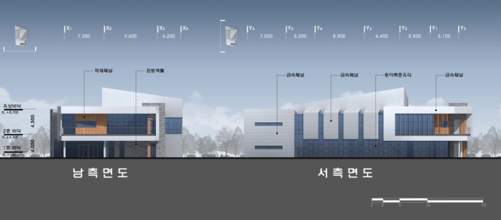 · 전면은 전통가옥의 누마루를 반영하여 집과같은 편안함을 주는 입면 계획