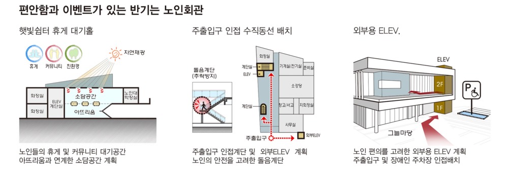 - 2층 대강당으로의 직접 이용을 고려한 외부용 엘리베이터 계획