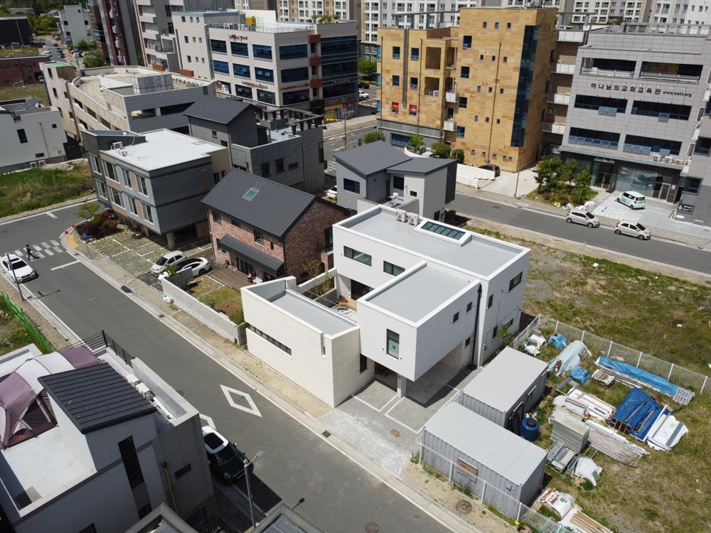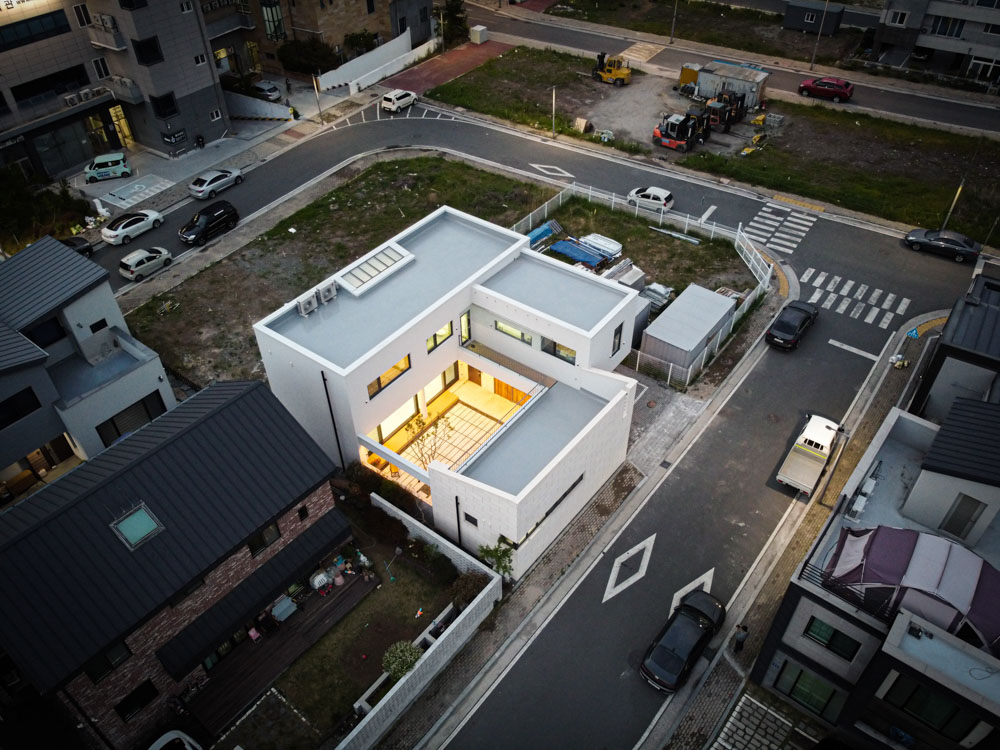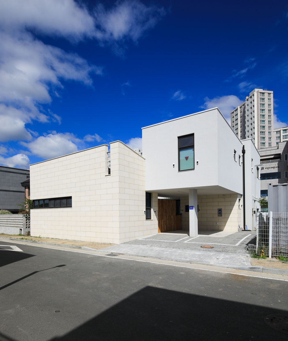 Three mass courtyard house Architect | Yoo, Jaeman · Kim, Kyeongtae · Park, Deoksung _ Dowon architecture design group(Dowon A&C Architects · Dowon GT Architects · Dowon DS Architects) Client | Ji, Juryeong Supervisor | Kim, Kyeongtae _ Dowon GT Architects Construction | Toma construction Project team | Sung, moosuck / Lee, yujin / Sin, yujin Location | 9-5, Sadeul-ro 34beon-gil, Jinju-si, Gyeongsangnam-do, Korea Program | Detached house Site area | 280.80㎡ Building area | 150.07㎡ Gross floor area | 199.76㎡ Building to land ratio | 53.67% Floor area ratio | 71.14% Building scope | 2F Structure | RC Exterior finishing | Limestone, Stuco Interior finishing | Silk wallpaper, Bontile, Kangmaru Design period | Aug. 2020 - Oct. 2020 Construction period | Oct. 2020 - Mar. 2021 Photograph | Yoo, Jaeman Structural engineer | Hyeodam sturcture engneering Mechanical engineer | Line engneering Electrical engineer | Line engneering |