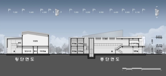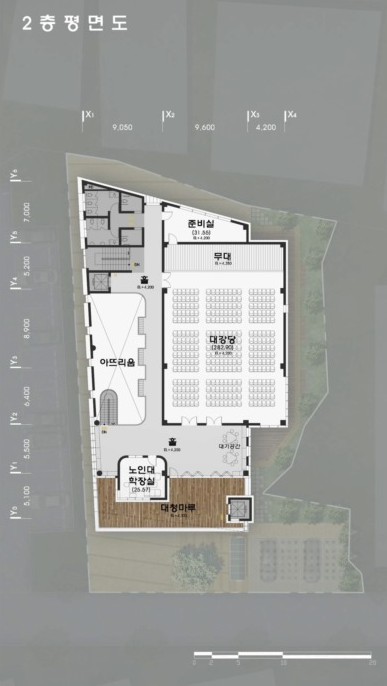 - 2층 대강당으로의 직접 이용을 고려한 외부용 엘리베이터 계획