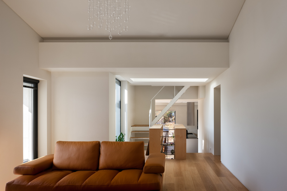 환기와 채광을 중요하게 생각하는 건축주의 요구에 따라, 남측은 최대한 큰 창문을 배치하여 채광을 확보하고, 북측 후면 옹벽 쪽에서는 집을 3미터 이격해서 혹시 모를 습기와 환기문제를 해결하였다.
