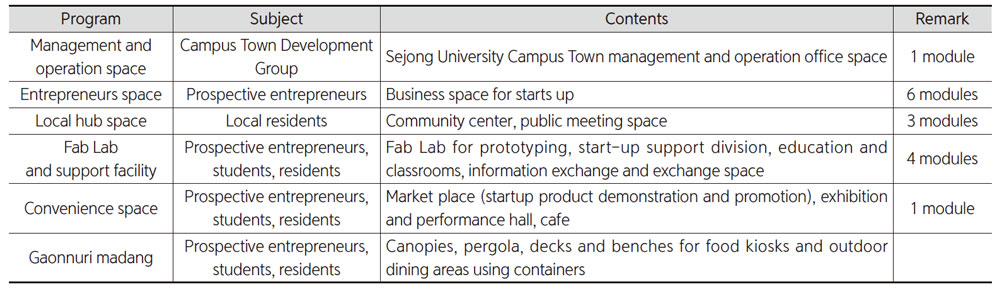 The campus town project is one of the urban regeneration projects by Seoul for the long-term growth of the university and the local community. Utilizing the physical, intellectual, and personal resources of the university is the key to the project. Furthermore, it is to make the job opportunities by attracting the cooperation between youth resources and the local community and activating the local economy. That is, to revitalize young people and the community to create an excellent village.