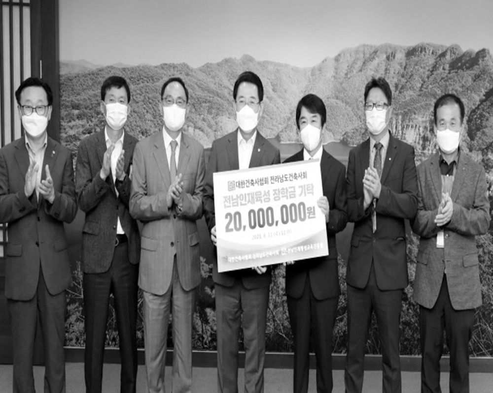 전라남도건축사회는 지난 8월 11일 인재육성을 위한 장학금 2,000만 원을 (재)전남인재평생교육진흥원에 기탁했다.