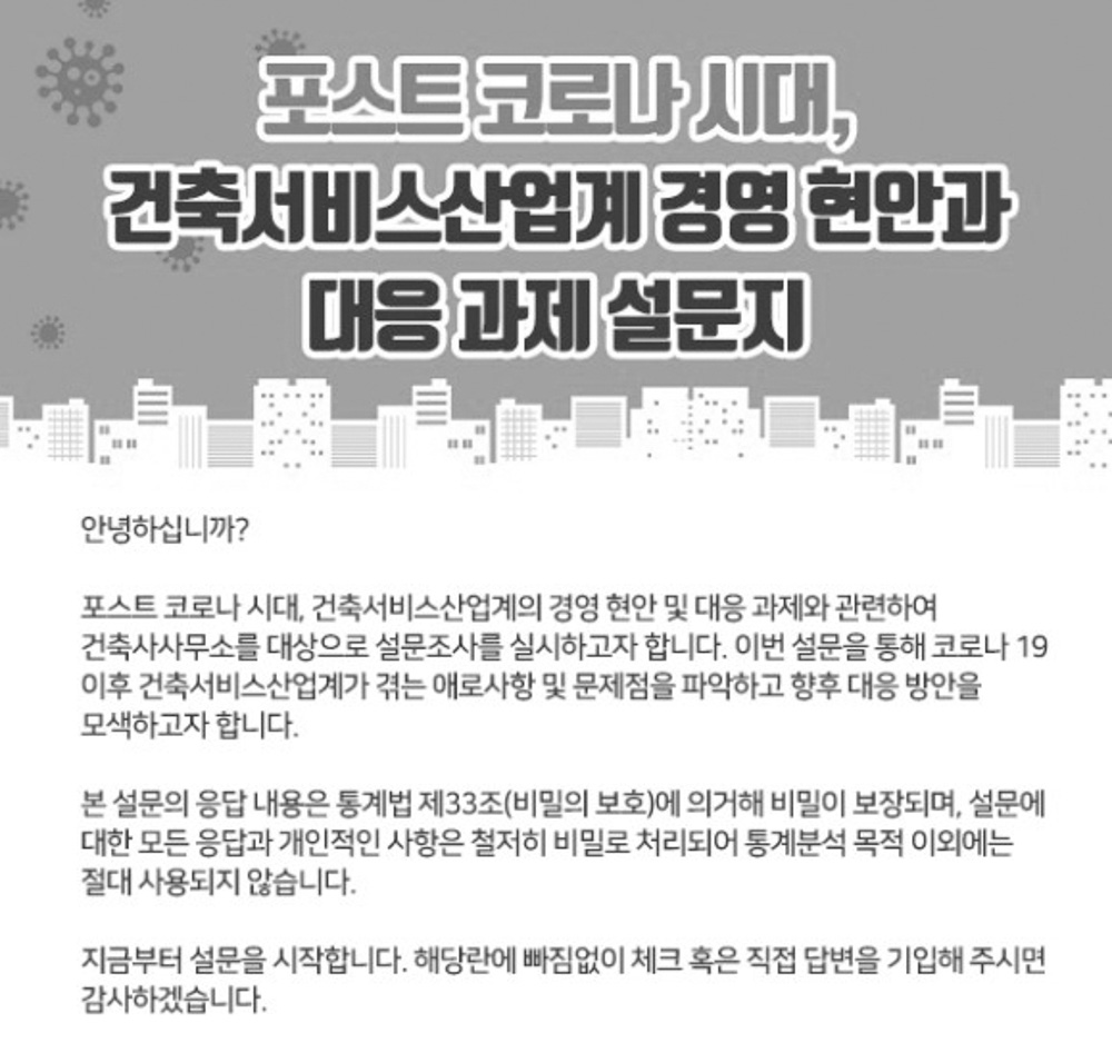 코로나 이후 경영 현안과 대응 과제는…건축사사무소 의견 듣는다