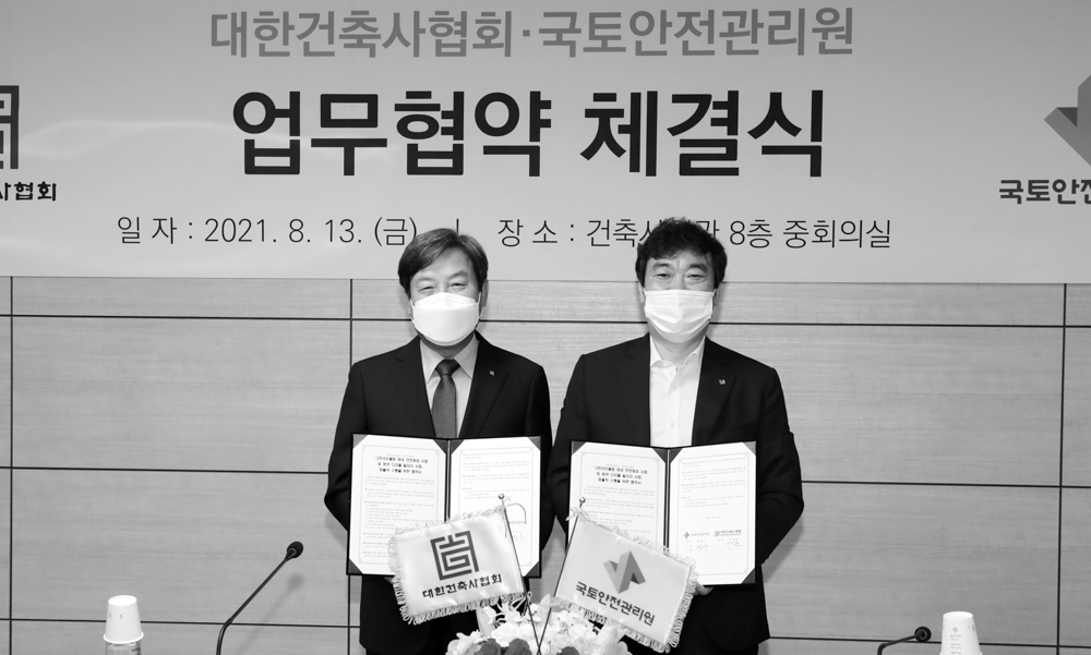 대한건축사협회는 8월 13일 서울시 서초구 소재 건축사회관에서 국토안전관리원과 업무협약식을 가졌다.
