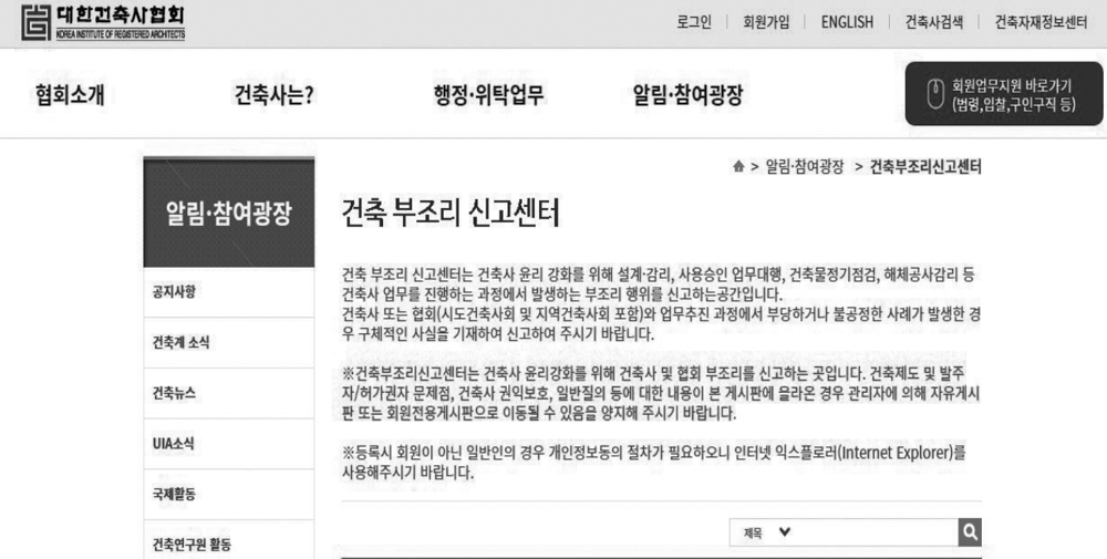 대한건축사협회, ‘건축부조리 신고센터’ 운영