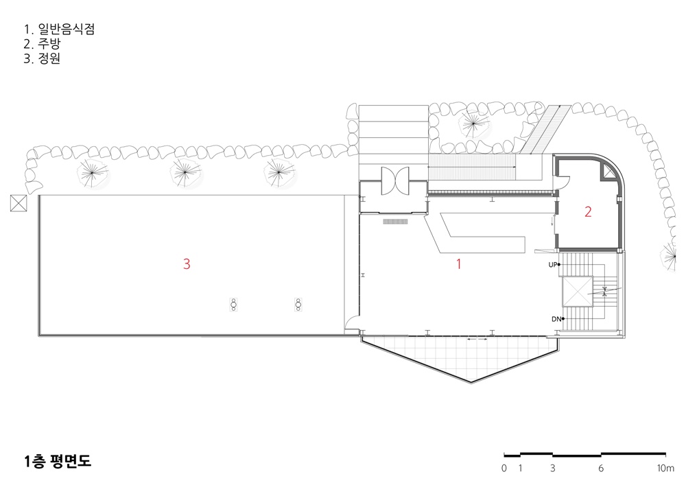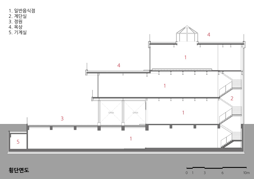 이 외에도 대지의 등고차를 이용해서 지하 1층에 연결된 넓은 야외 테라스 공간, 옥상의 전망대, 방문객들을 위한 이벤트 공간 등을 통해 지친 사람들을 위한 힐링공간을 만들고자 했다.