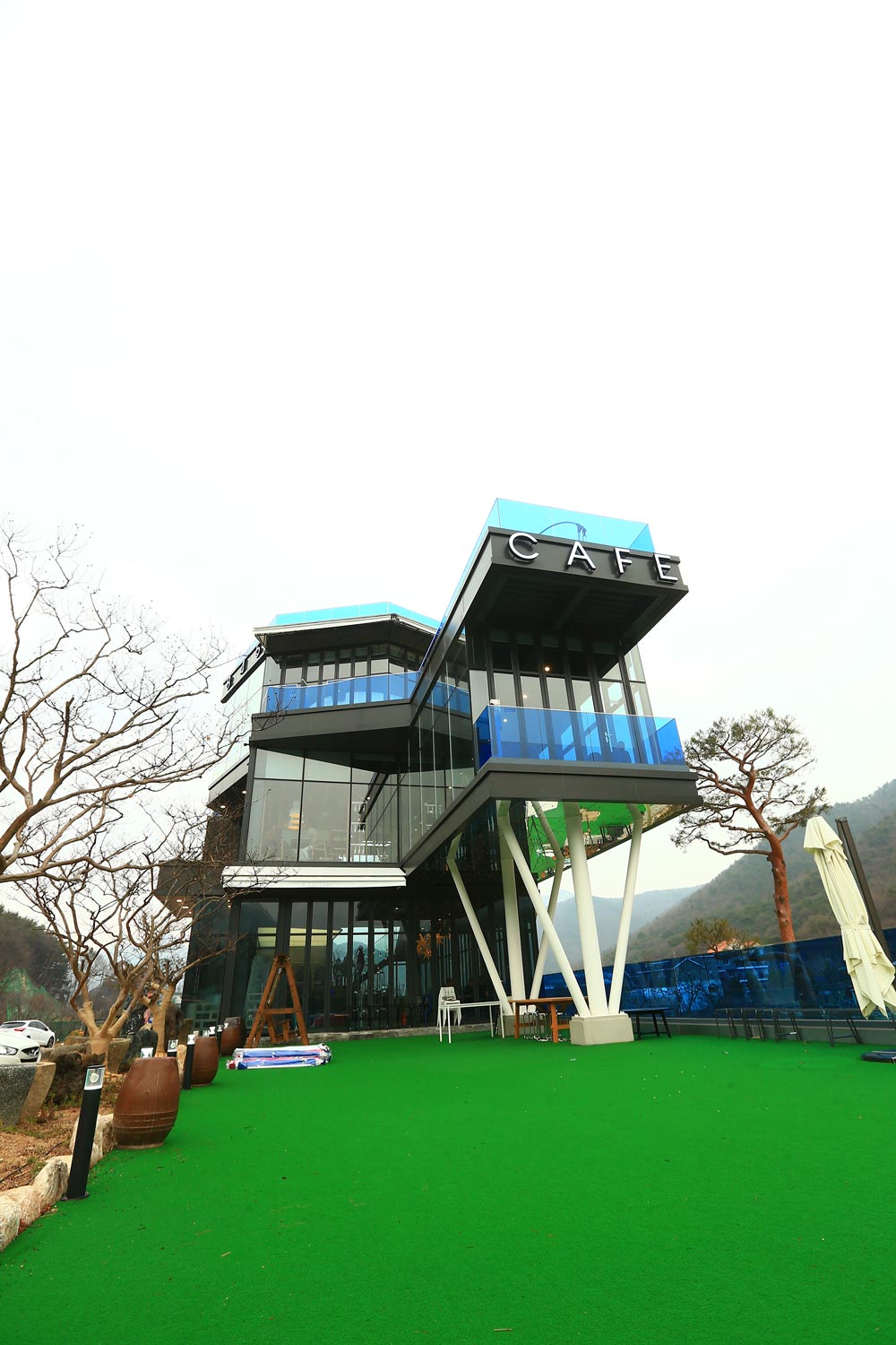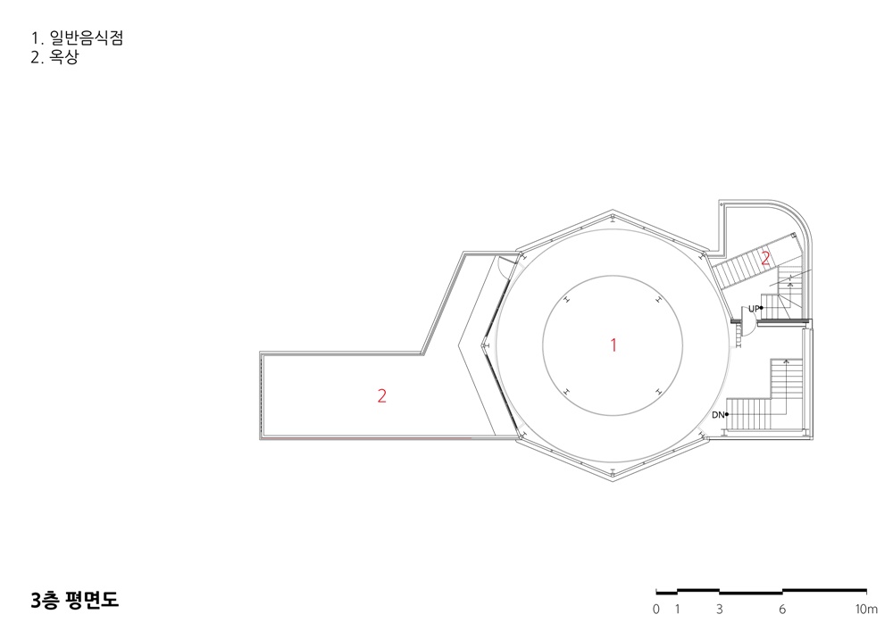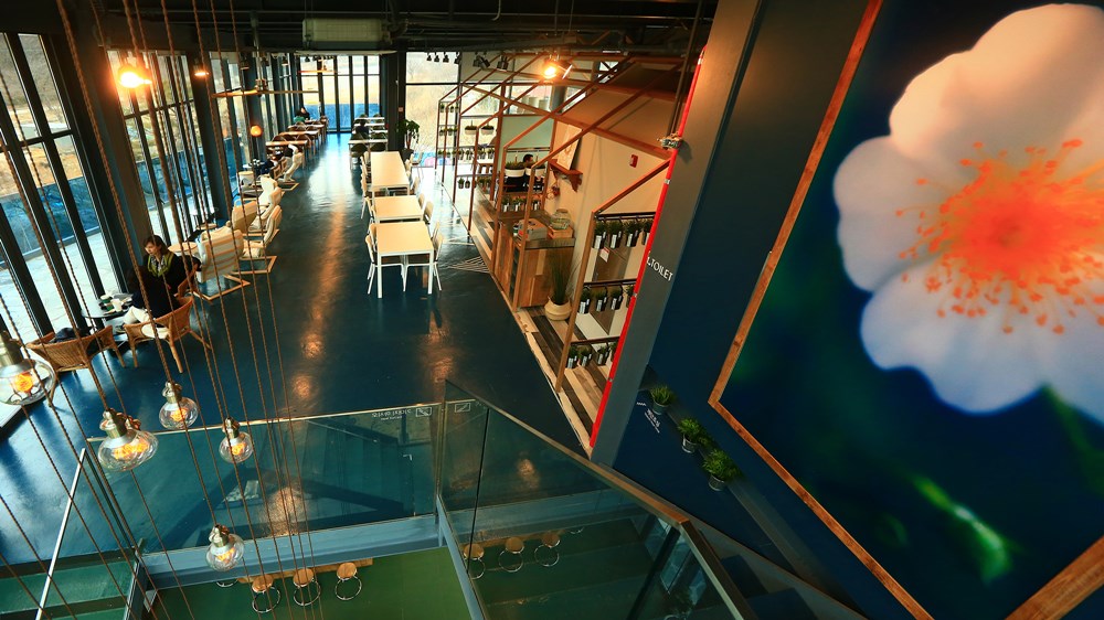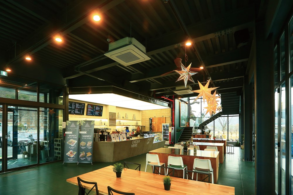 The unique architectural charm of Awesome 845 appears on the third floor. If you go up to the third floor through the first and second floors, you will find a turntable-type space where the bottom rotates. In the moving space designed by the client’s request, the seats of consumers move slowly along the rotating floor. It allows you to look at various scenes outside the window from the moving seat.