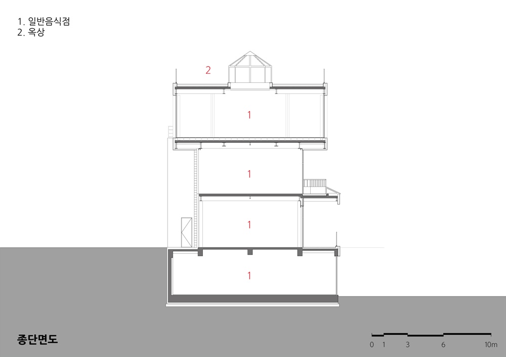 In addition to this, I designed to create a healing space for exhausted people through a large open-air terrace area connected to the first basement floor, a rooftop observation deck and an event space for visitors by using the height difference of the land.