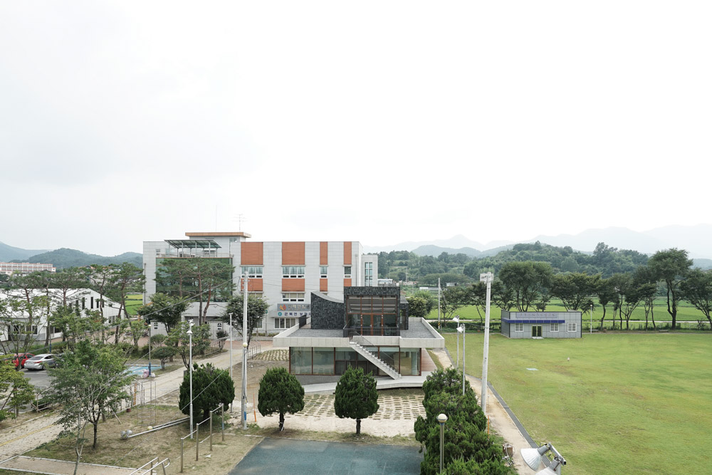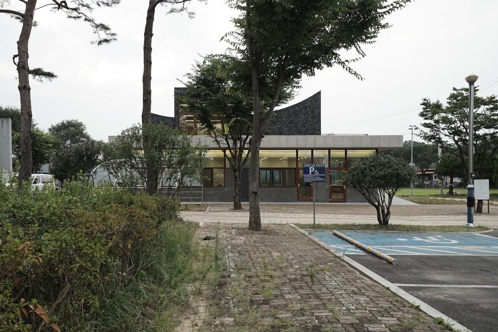 The project site of the local children's care center of Haman is a clean estate. It is exposed to green areas such as trees and gardens in all directions-especially on the one side, facing a large open sports field that residents use. Trees surround the sports field, have glass on the floor, and residents, including children, use it for various purposes such as exercising or walking in their daily lives. Therefore, the local children's care center plan also defined relationships with external spaces, including the sports field.