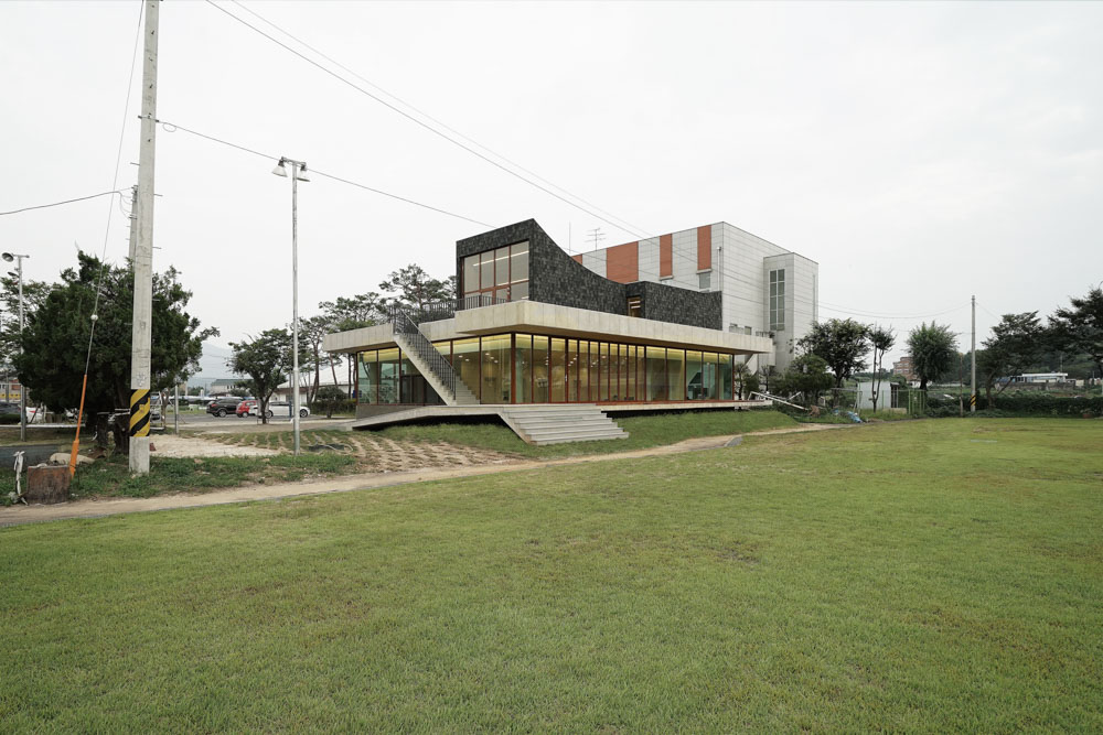 Haman Local Children’s Center Architect | Jo, Janghee _ JYA-RCHITECTS Client | MIRAL Welfare Foundation Supervisor | Jo, Janghee _ JYA-RCHITECTS Construction | JD construction Project team | Seong, Jieun / An, Hyunhee / Kang, Jongsu Location | 766, Hamma-daero, Gunbuk-myeon, Haman-gun, Gyeongsangnam-do, Korea Program | a Community center for children Site area | 5,821.00㎡ Building area | 218.90㎡ Gross floor area | 266.59㎡ Building to land ratio | 17.17% Floor area ratio | 20.91% Building scope | 2F Structure | RC Exterior finishing | Expose concrete, Ripping stones, Asphalt shingle Interior finishing | Rawnag plywood, Rawnag lumber louver, White paint on gypsum board Design period | May 2019 – Nov. 2019 Construction period | Dec. 2019 – Aug. 2020 Photograph | Won Youmin _ JYA-RCHITECTS Structural engineer | Hangil Mechanical engineer | Jungyeon Electrical engineer | Jungyeon Fire engineer | Jungyeon |