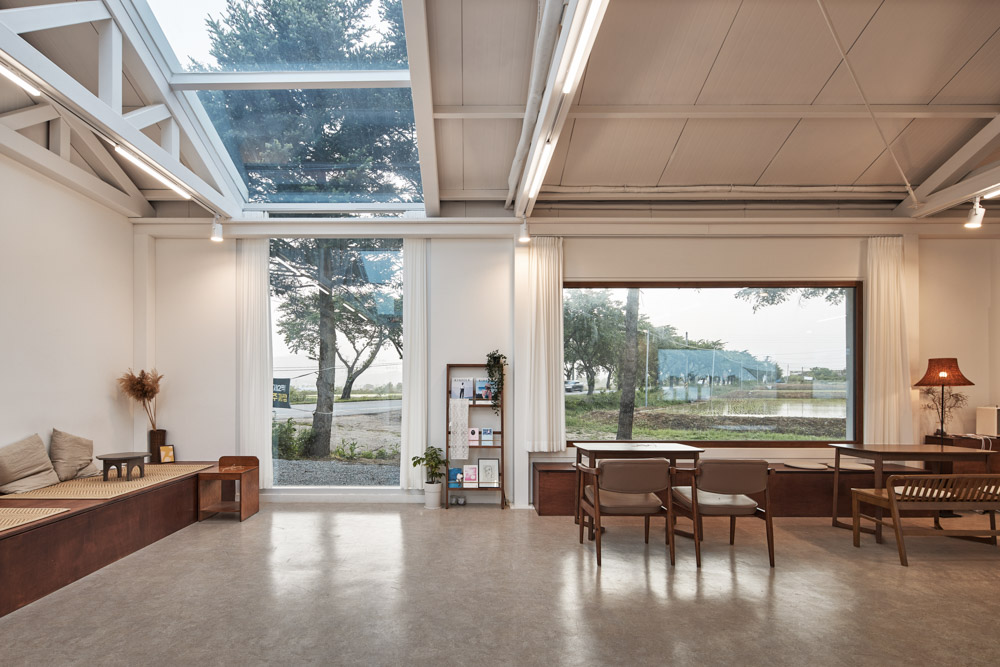 In order to supplement the 164㎡ interior space as a sales facility, the outdoor space using the yard and surrounding landscape was planned to be connected, and each space was divided into different colors and materials so that visitors would not feeling bored.