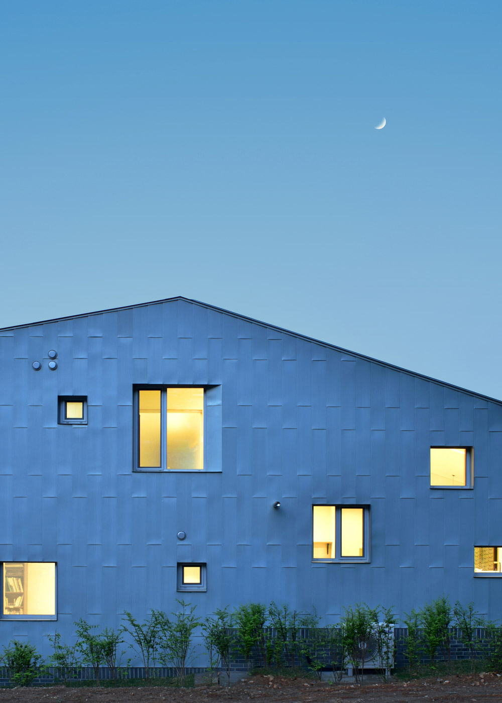 Considered durability as the first when considering external finishes, used blue-grey jinks and traditional gray bricks, materials that react and change over time due to nature rather than chemical effects. The jink plate consists of a 270mm wide vertical module, with corners, windows, and openings of all walls tailored to the module. For the place withdrawn from the wall, redwood made an apt harmony between natural and artificial materials. The exterior wall is 490mm thick, increasing insulation and emphasizing the sculptural shape of the building by deep-cut windows. White paint and wallpaper were fused for the ceilings and walls inside, and stairs, windows, and furniture had similarities with simple and moderate details considering the simplicity and economy of the building.
