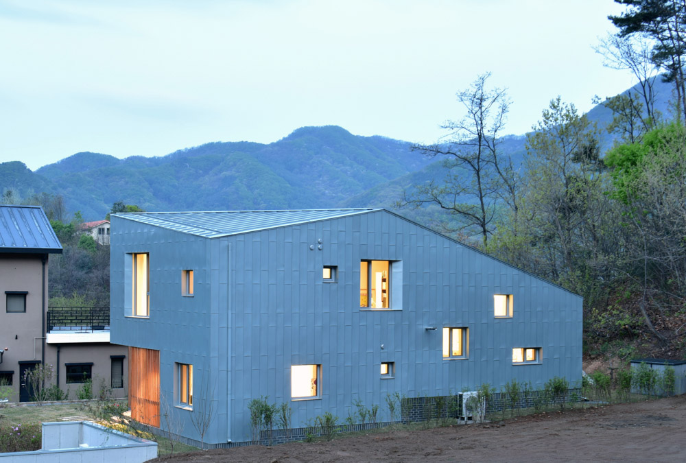 대지 주변의 자연을 닮은 조각 형태의 미니멀한 실용적 건물은 간결한 선의 조화로 건물 전체에 통일감을 주고, 4면에 펼쳐진 산·강·마을·하늘을 담는 갤러리 같은 공간으로 만들어졌다. 코로나19가 만든 거리두기의 생활과 성찰적 삶의 태도를 온전히 실천할 수 있는 공간이기도 하다. 건물의 모습과 외벽의 질감, 색채는 계절과 날씨, 시간에 따른 빛과 그림자, 그리고 세월과 함께 서서히 고색으로 바래는 외벽 자재들에 의해 지속적으로 변한다.