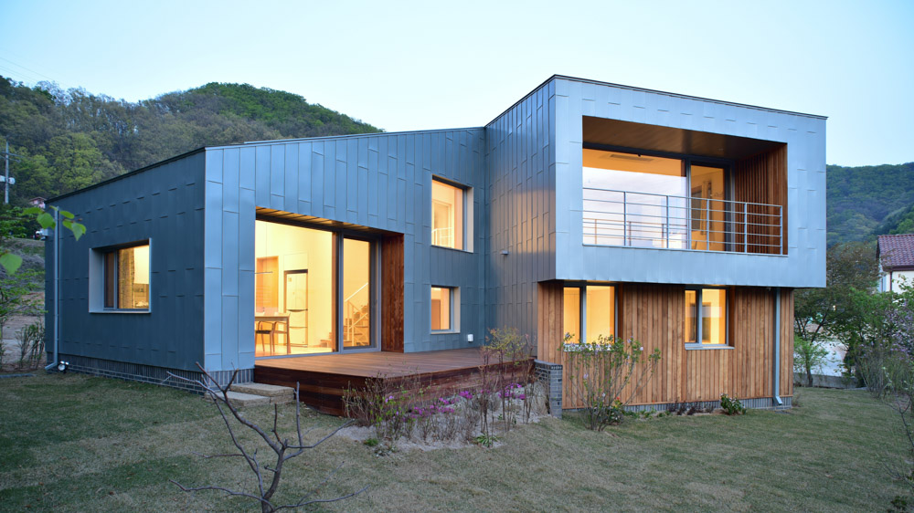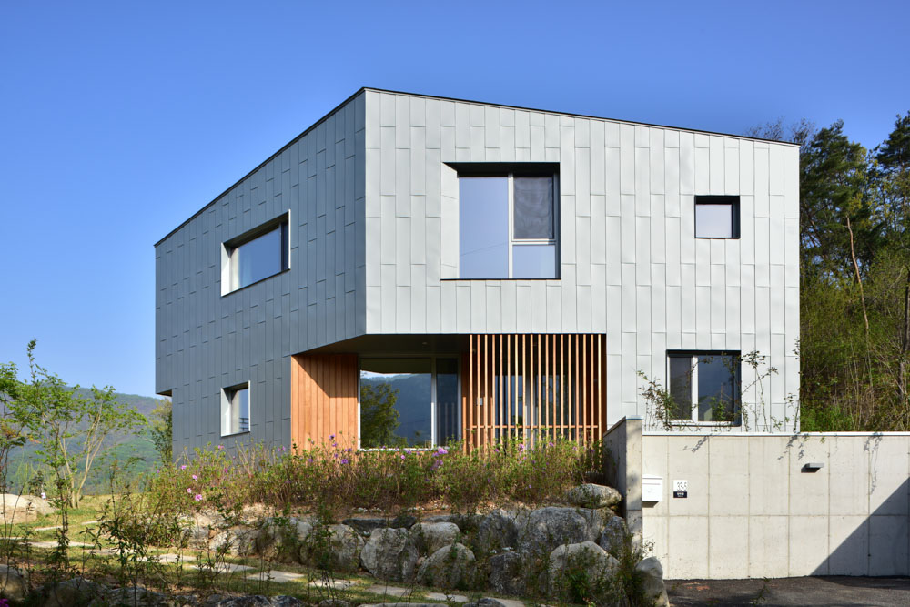 대지 주변의 자연을 닮은 조각 형태의 미니멀한 실용적 건물은 간결한 선의 조화로 건물 전체에 통일감을 주고, 4면에 펼쳐진 산·강·마을·하늘을 담는 갤러리 같은 공간으로 만들어졌다. 코로나19가 만든 거리두기의 생활과 성찰적 삶의 태도를 온전히 실천할 수 있는 공간이기도 하다. 건물의 모습과 외벽의 질감, 색채는 계절과 날씨, 시간에 따른 빛과 그림자, 그리고 세월과 함께 서서히 고색으로 바래는 외벽 자재들에 의해 지속적으로 변한다.