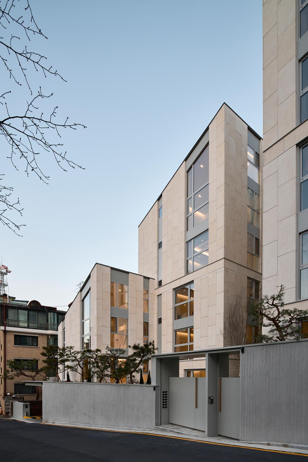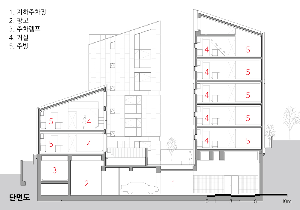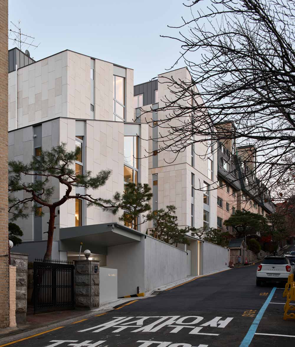 Villa de ru Architect | Choi, Jian_ Eanseowoo Architects Client | Jo, Eunsun and 9 others Supervisor | YM Studio Construction | YoungJo Project Management Office | RICHUE Project team | Lee, Jongchul Location | 25, Sapyeong-daero 16-gil, Seocho-gu, Seoul, Korea Program | Multi-family complex Site area | 700.60㎡ Building area | 353.57㎡ Gross floor area | 1,548.81㎡ Building to land ratio | 50.47% Floor area ratio | 149.8% Building scope | B1F - 5F Structure | RC Exterior finishing | Stone, Color steel plate Interior finishing | Paint on plaster board, Wood floor Design period | 2018. 06 - 2019. 09 Construction period | 2019. 10 - 2020. 11 Photograph | Choi, Jinbo Structural engineer | HUB Structural ENGINEERING Mechanical engineer | DooHyun Electrical engineer | DaeKyung |