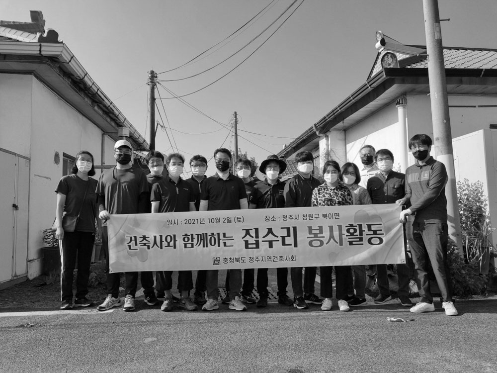 충청북도건축사회 청주지역건축사회 소속 회원 10여 명은 10월 2일, 청주시 청원구에 위치한 기초생활수급자의 집을 찾아, 도배·장판·페인트칠·전등과 싱크 대 교체 작업과 기타 주변정리 봉사활동을 실시했다.