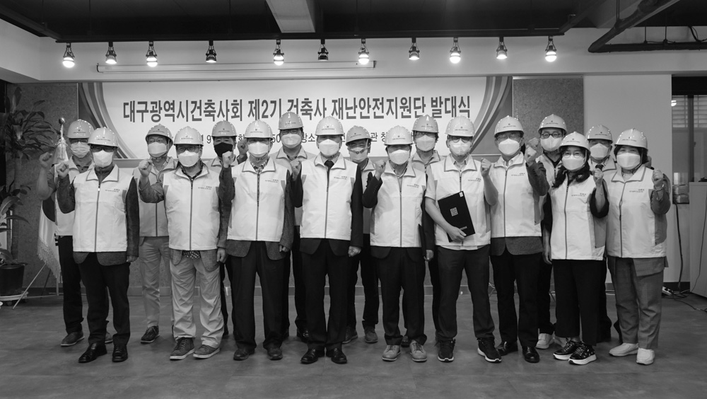 대구광역시건축사회는 9월 7일 대구시건축사회관 창조홀 대회의실에서 ‘대구광역시건축사회 제2기 건축사 재난안전지원단 발대식’을 개최했다. 이번에 출범한 제2기 재난안전지원단은 석한수 대구시건축사회장을 단장으로 하여 총 22명의 대구시건축사회 회원들로 구성됐다.
